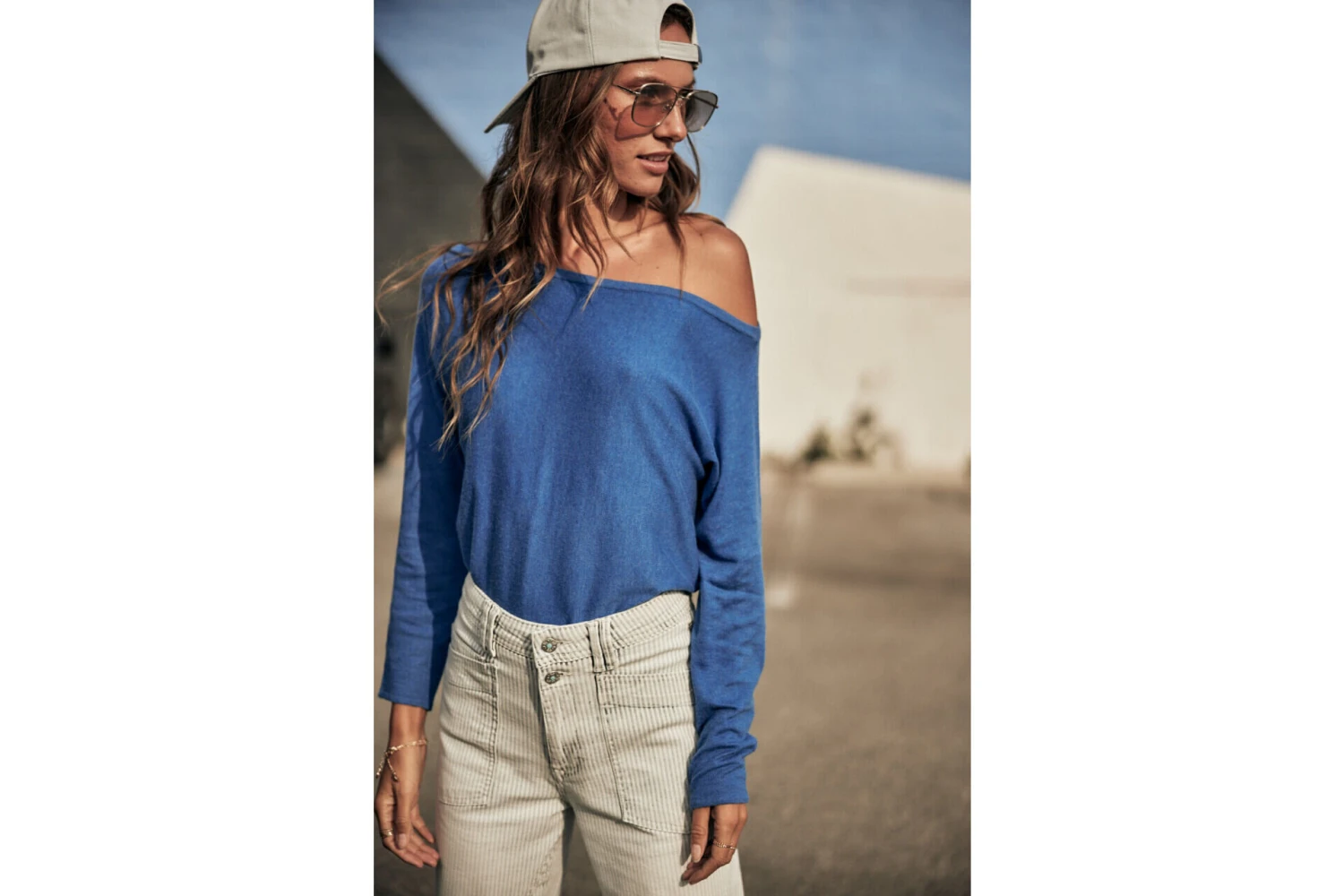 • Pull fin à large encolure qui tombe sur les épaules