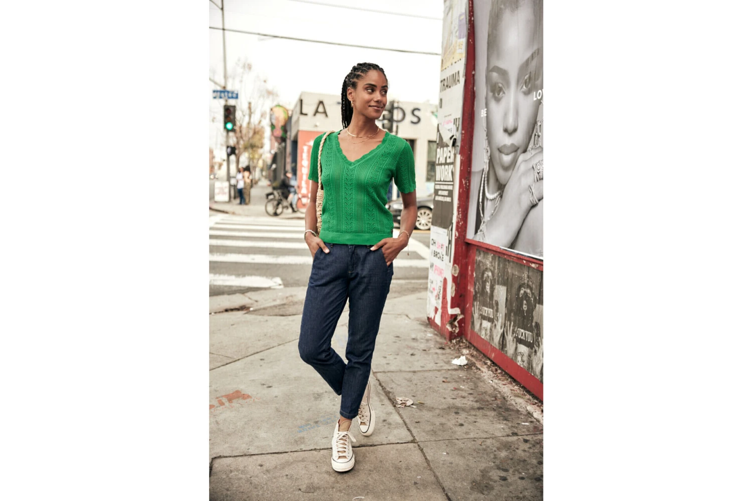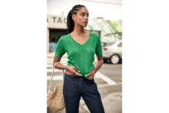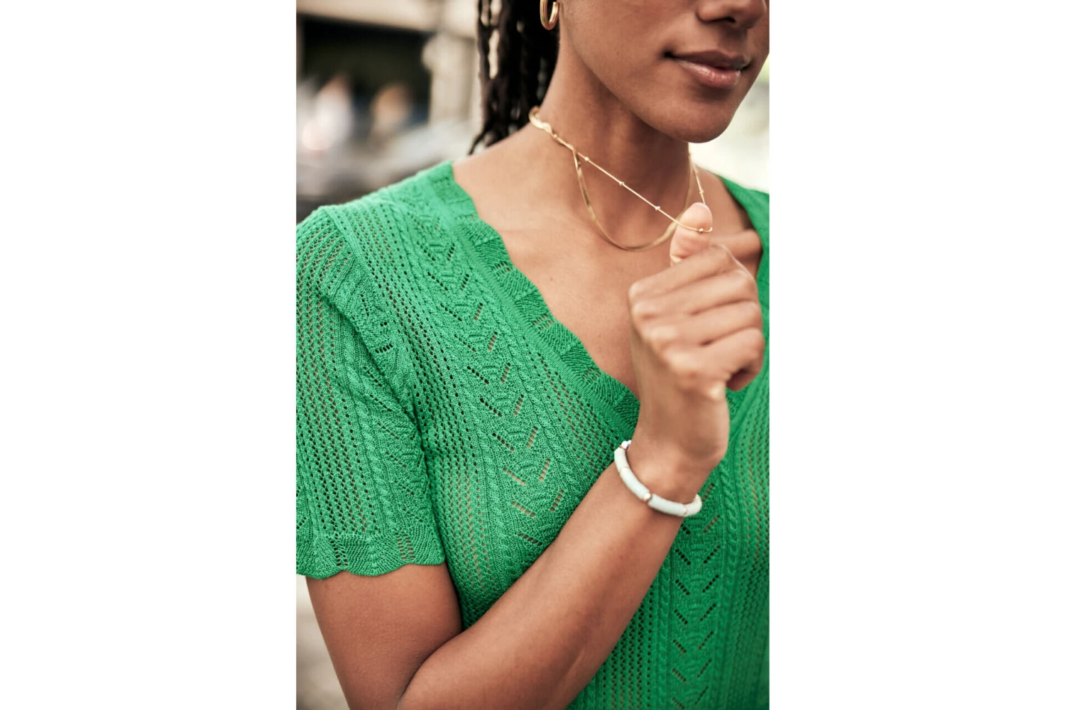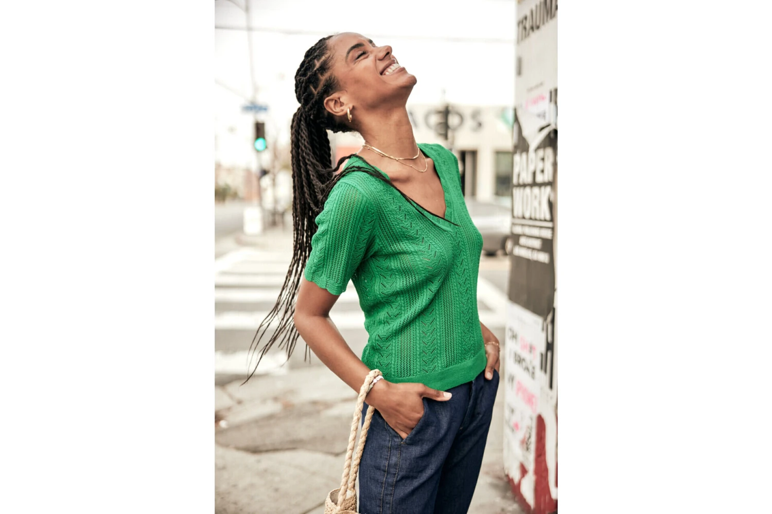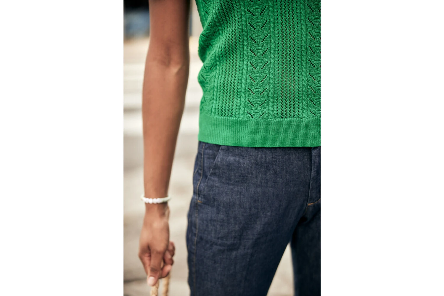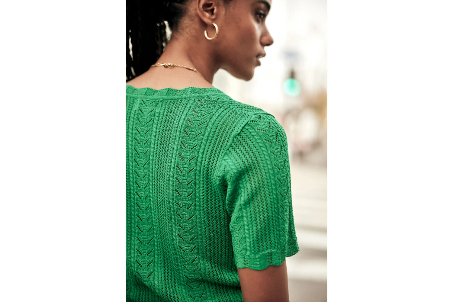 • DĂ©tail de rib fantaisie sur l’encolure et le bas des manches