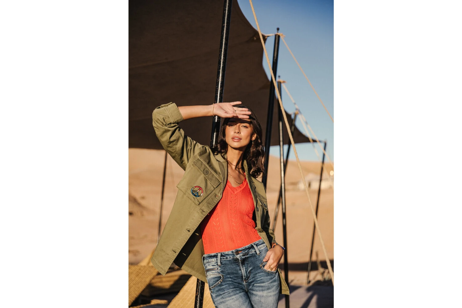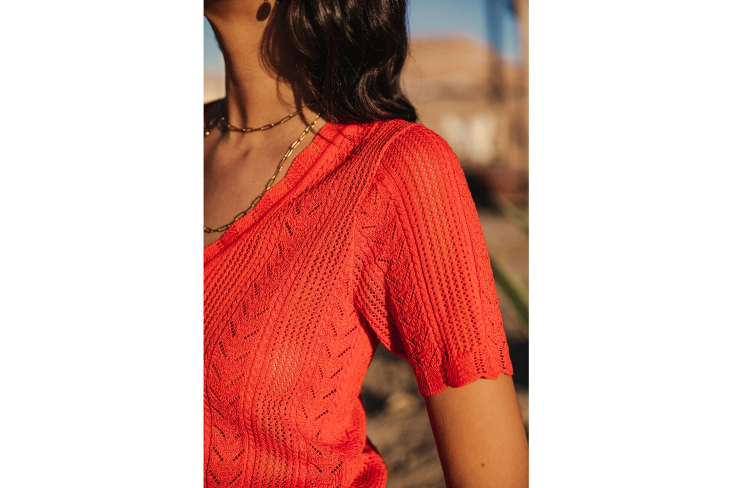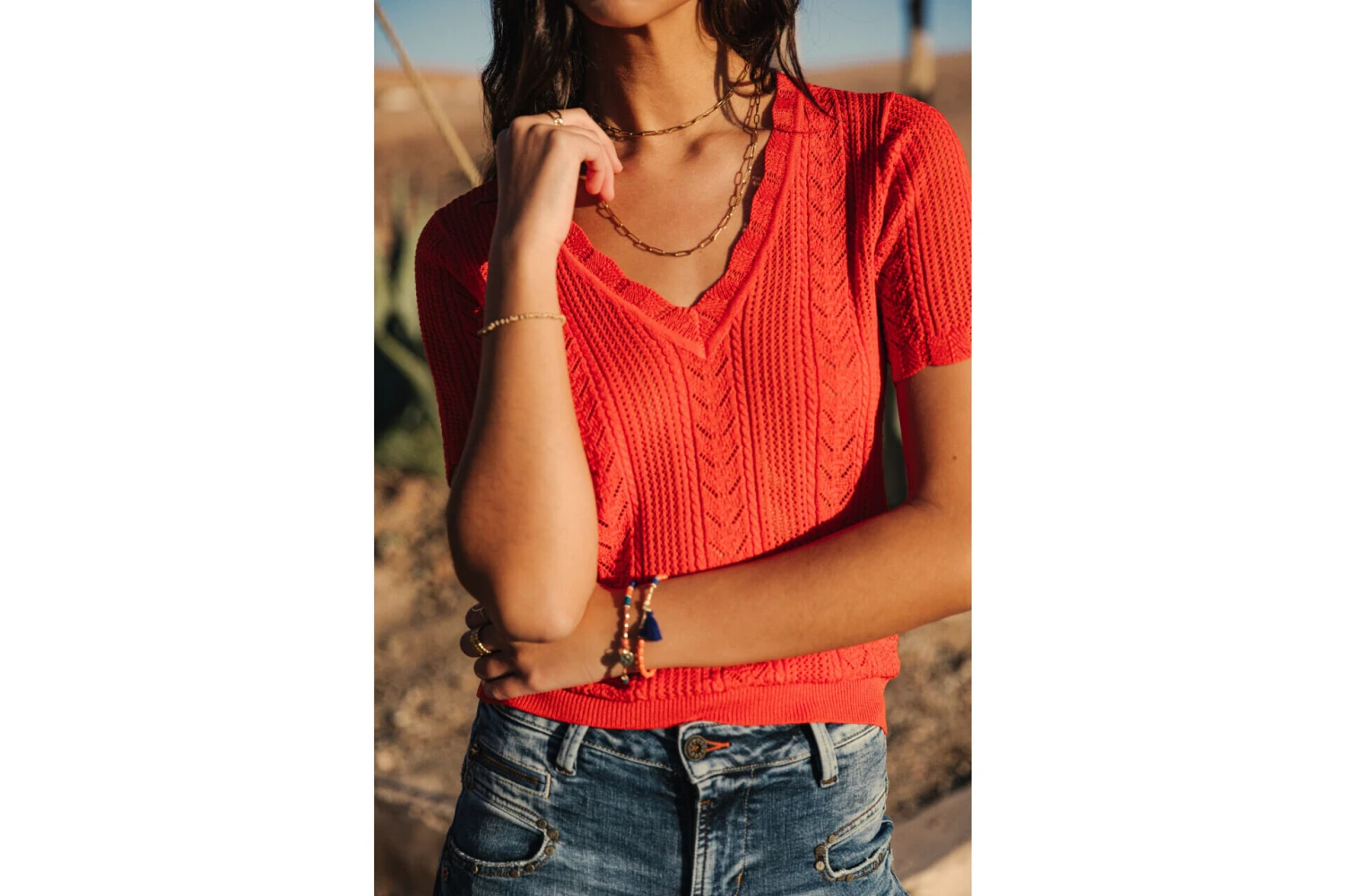 • DĂ©tail de rib fantaisie sur l’encolure et le bas des manches
