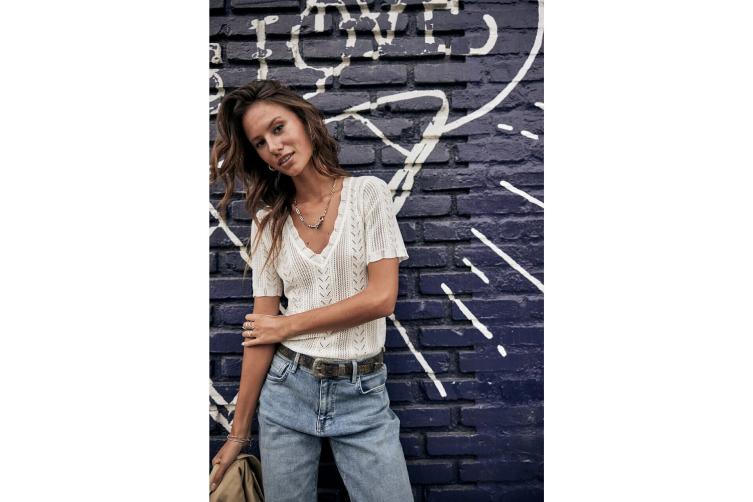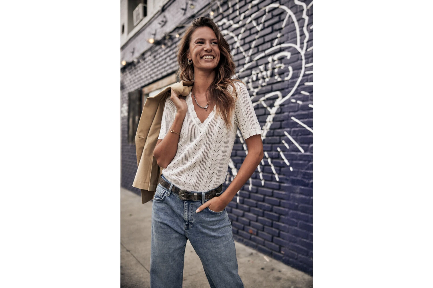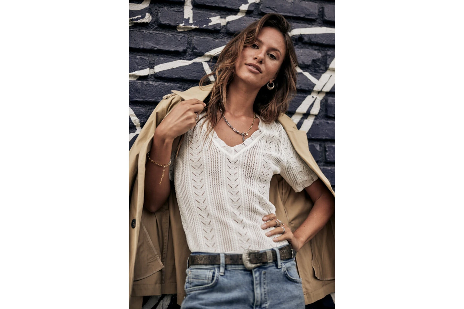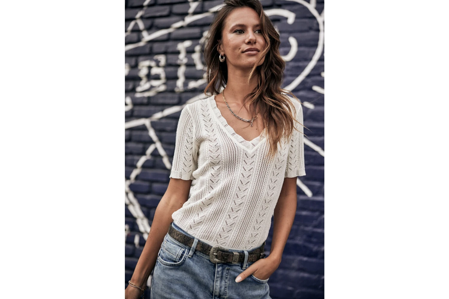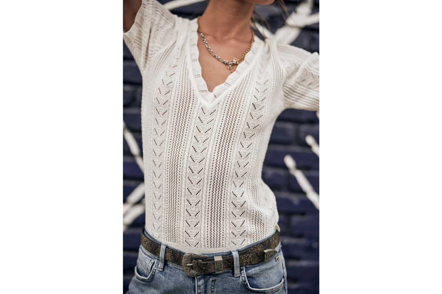 • DĂ©tail de rib fantaisie sur l’encolure et le bas des manches