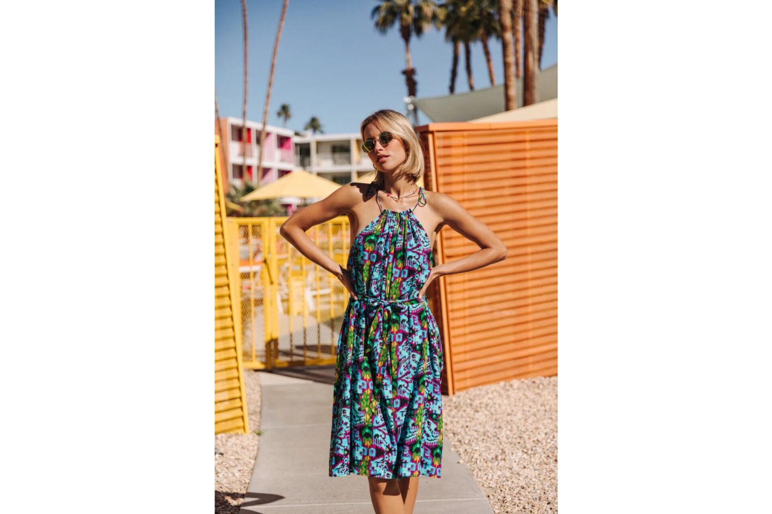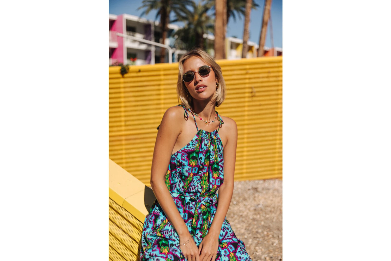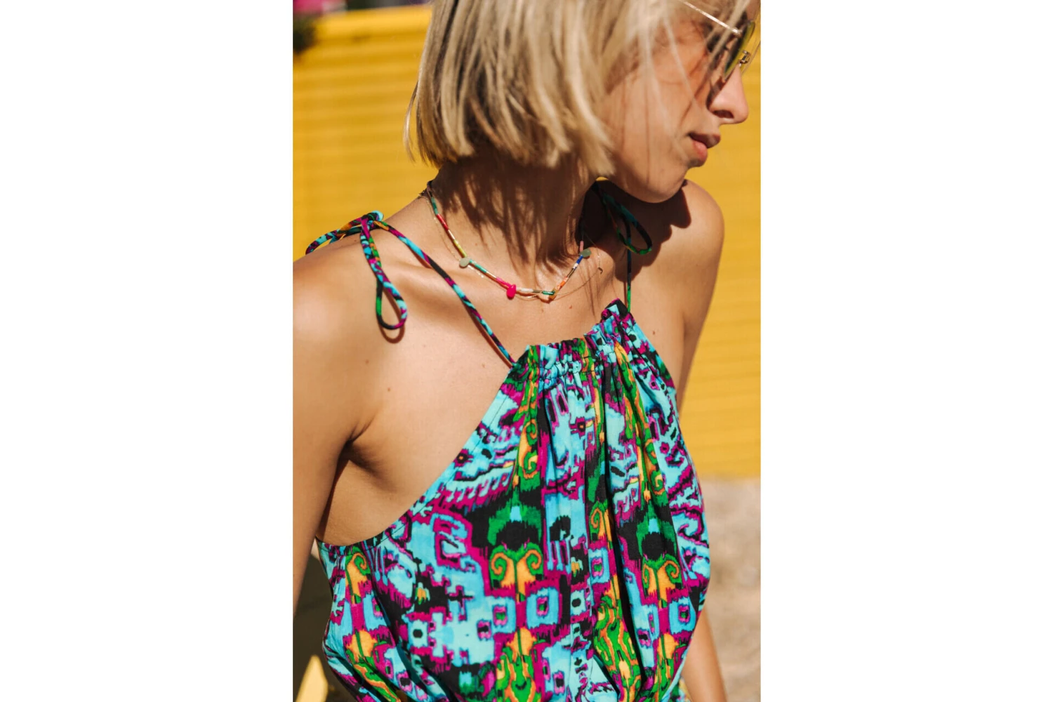 • Robe courte à fines bretelles à nouer