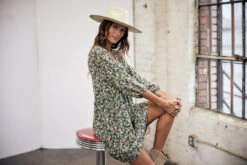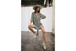 • Robe trapèze à manches 3/4 en viscose et rayonne fluide