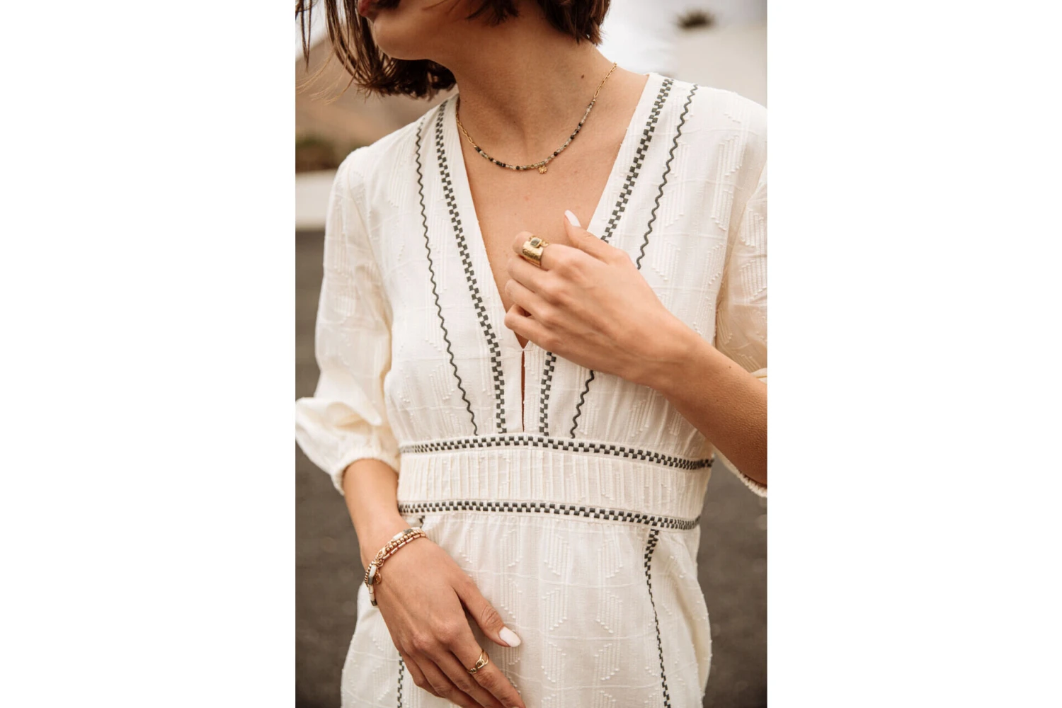 • Agrémenté de broderies fil fines aux motifs ethniques