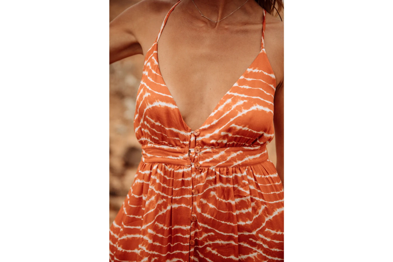 • Imprimée dans un motif bicolore tie&dye entièrement boutonnée sur le devant