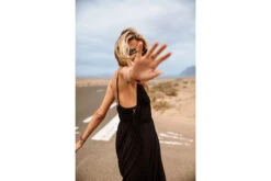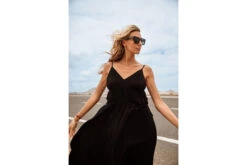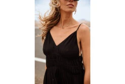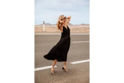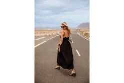 ⹠Robe longue à bretelles dans une matiÚre unie, fluide et texturée