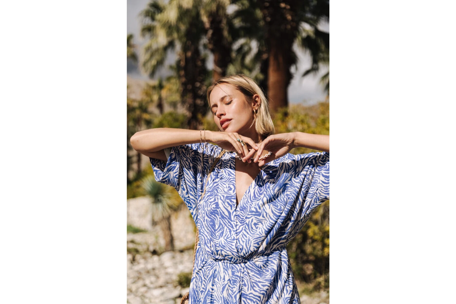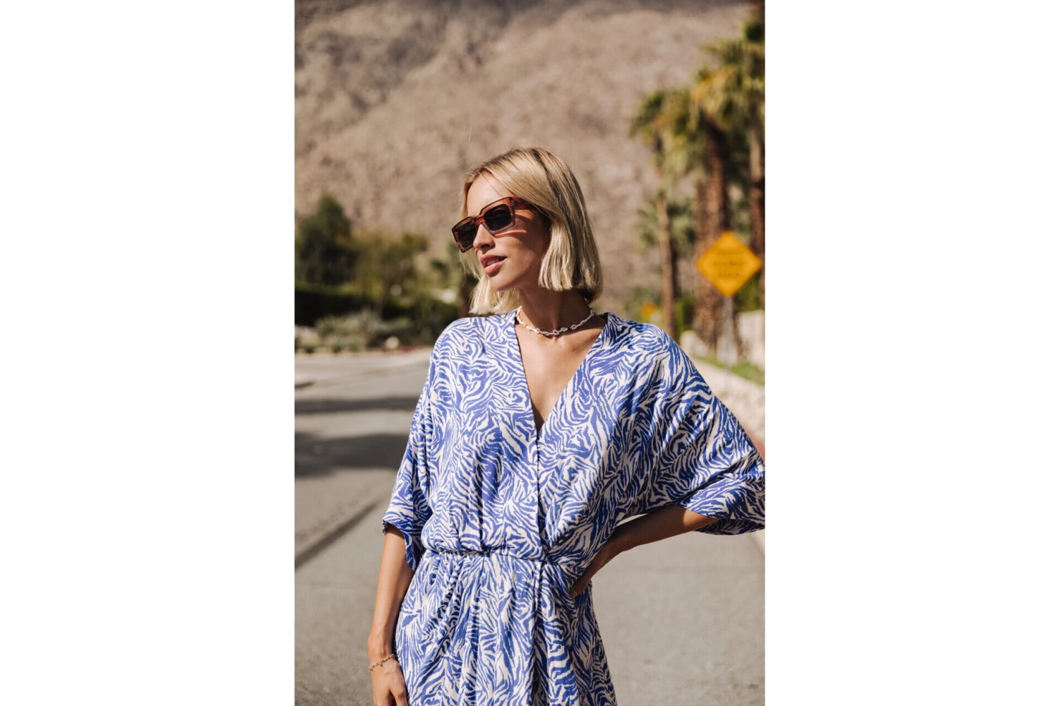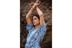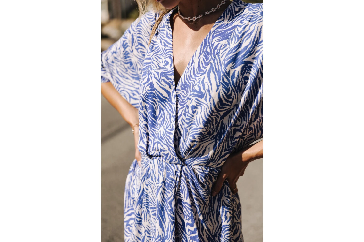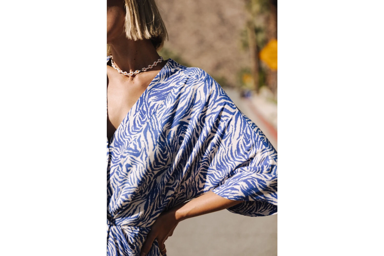 • Imprimé zébré bleu majorelle sur fond écru