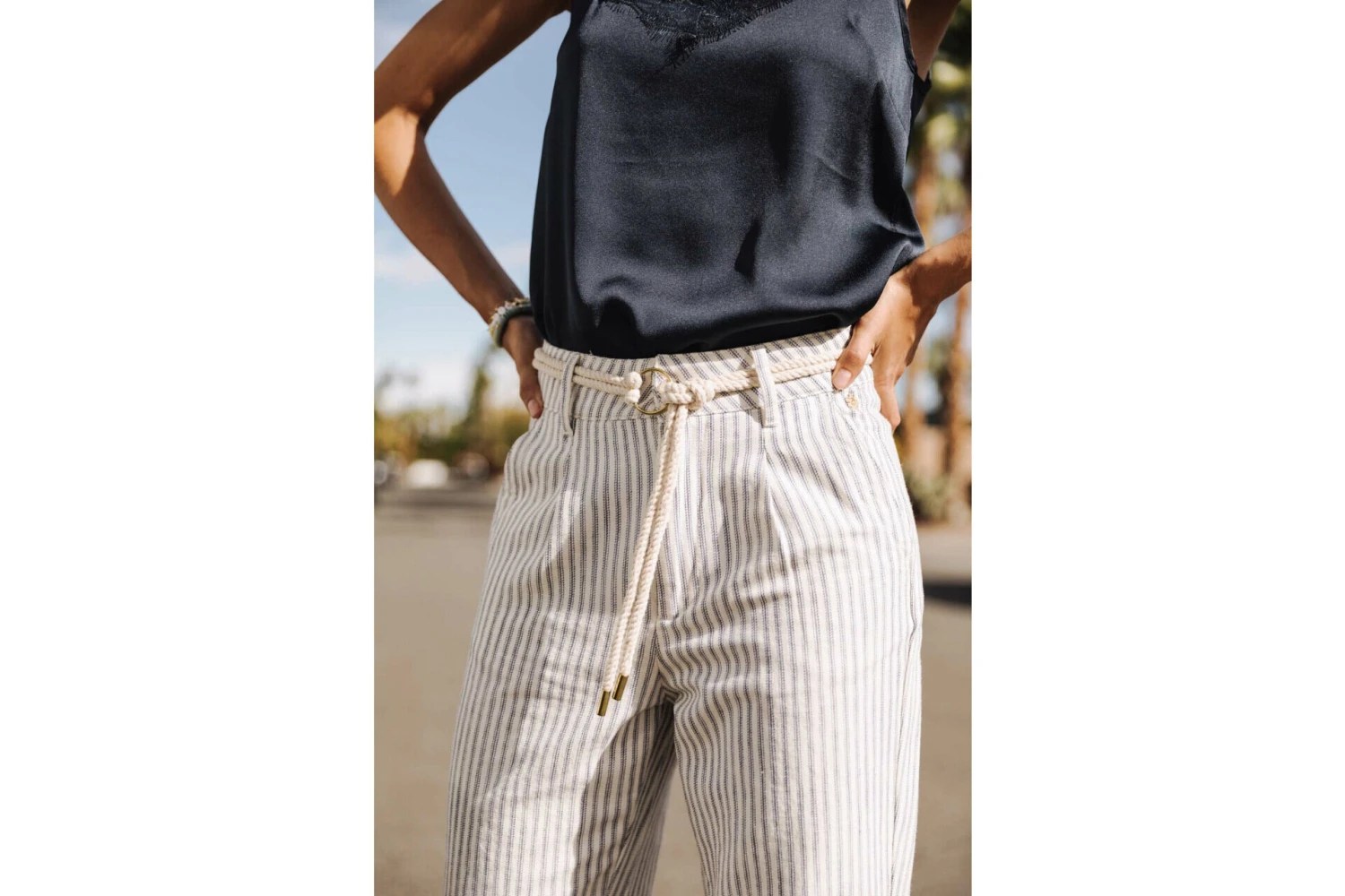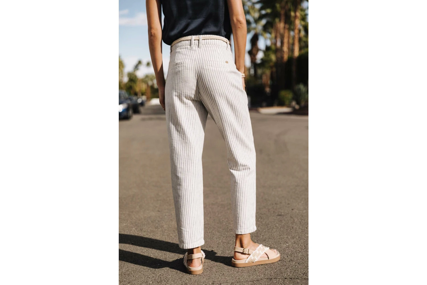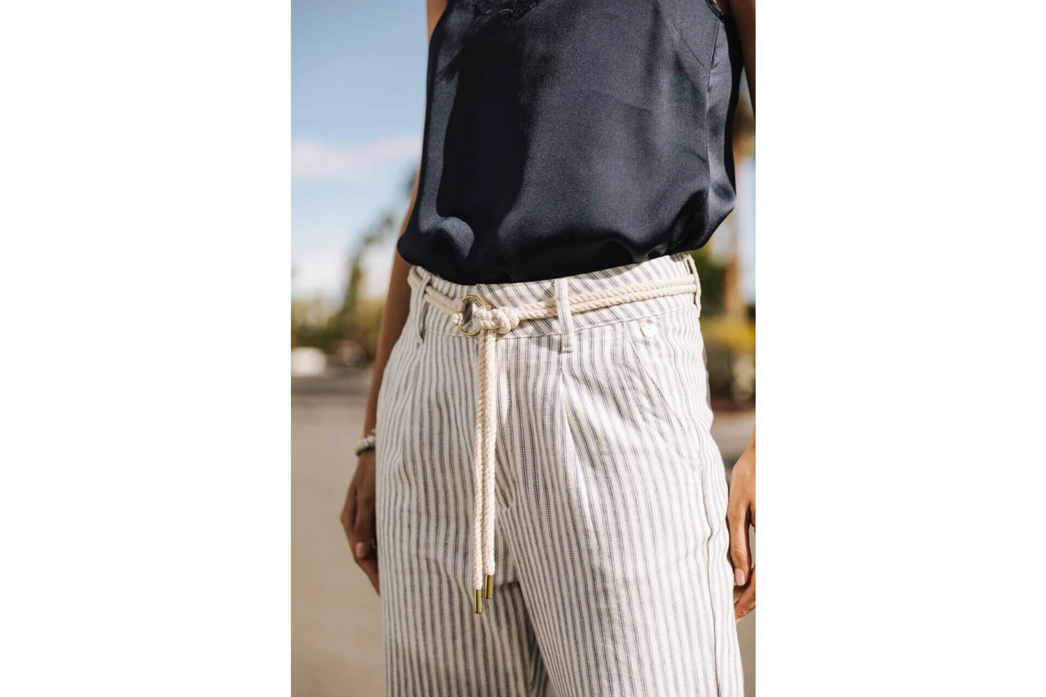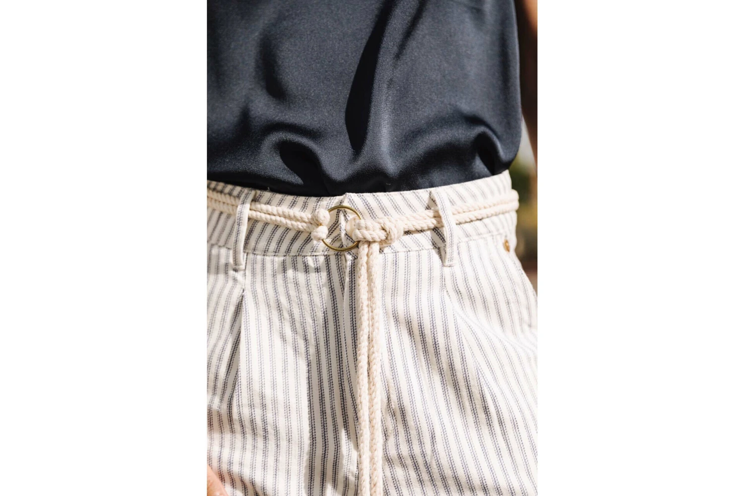 • Matière non stretch à rayures dans les tons blanc cassé et bleus