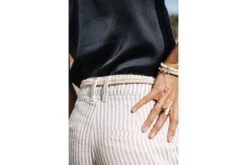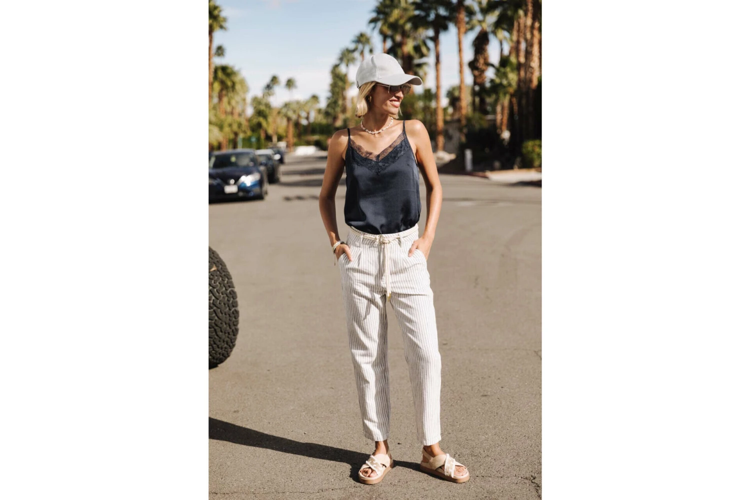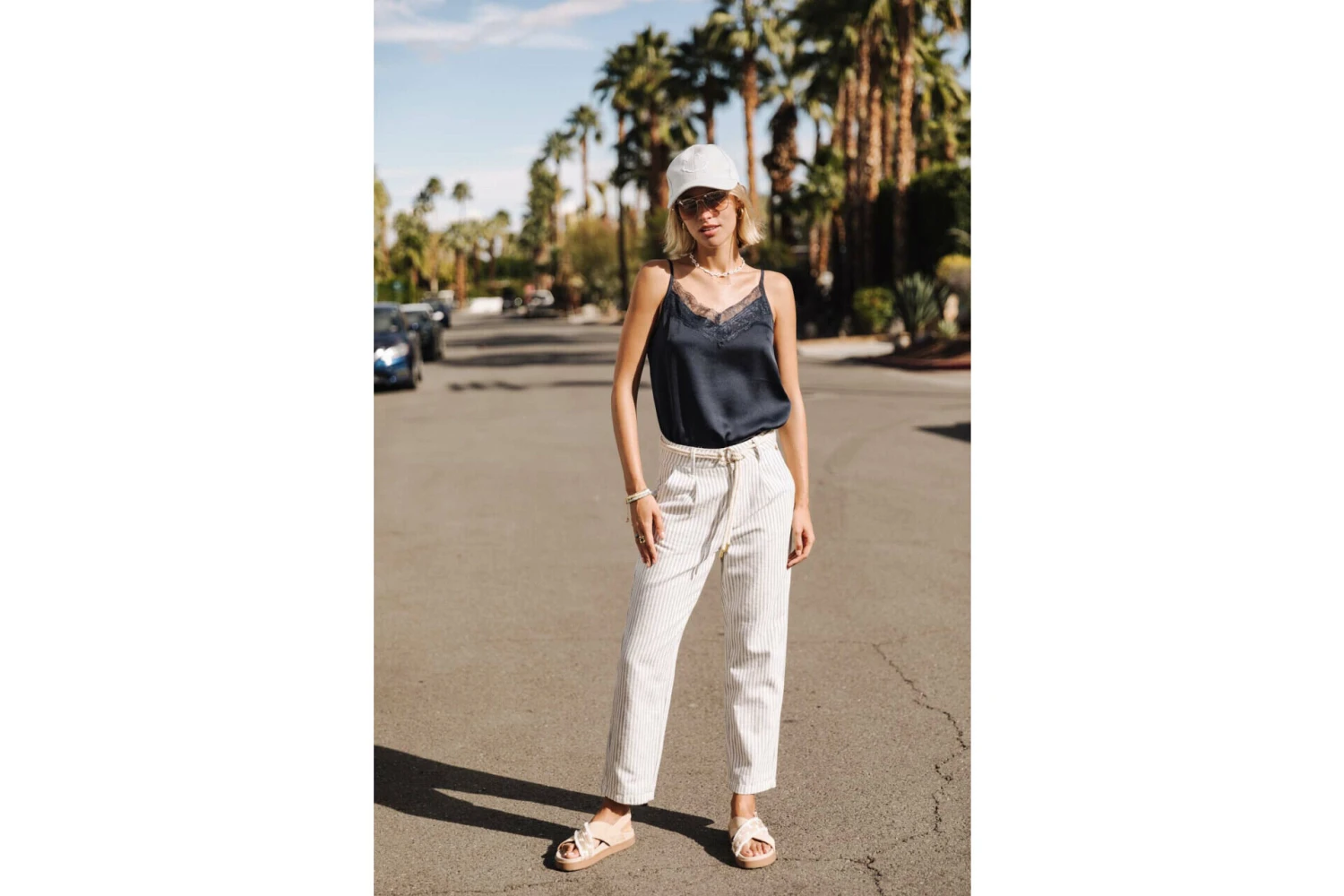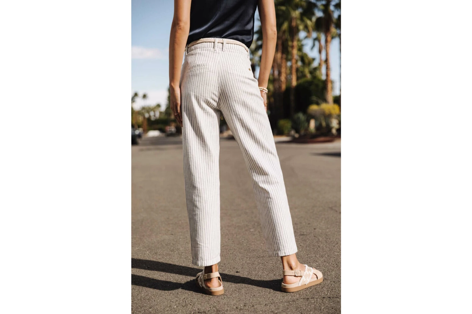• Matière non stretch à rayures dans les tons blanc cassé et bleus