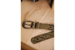 • 1 passant en Cuir agrémentée de clous en métal argenté travaillé et veilli