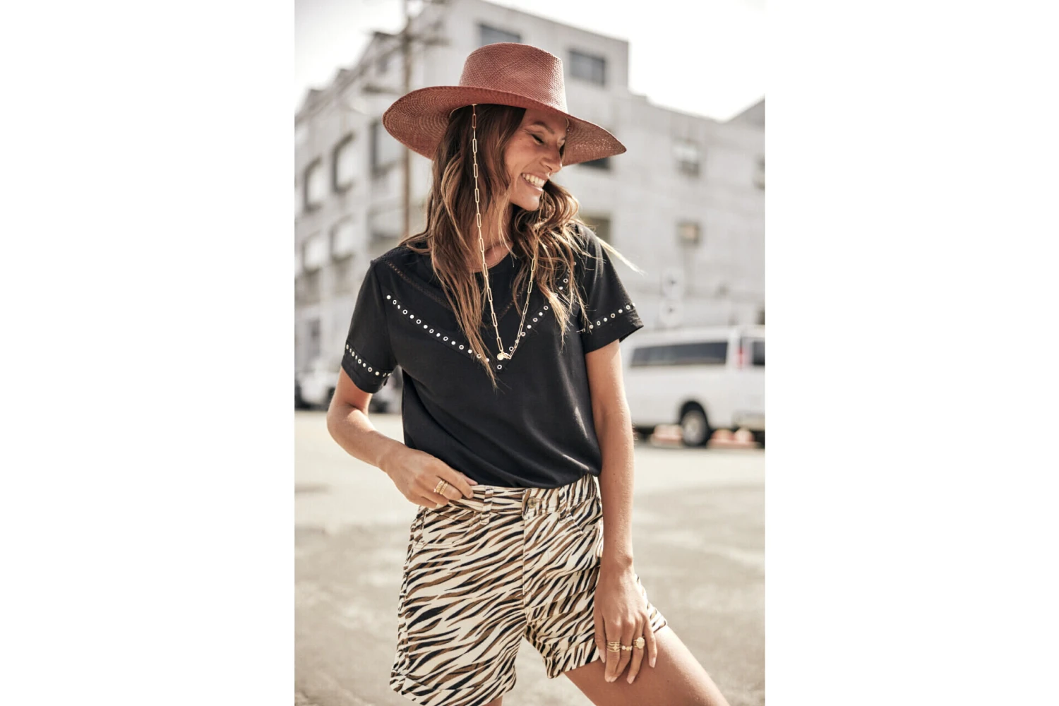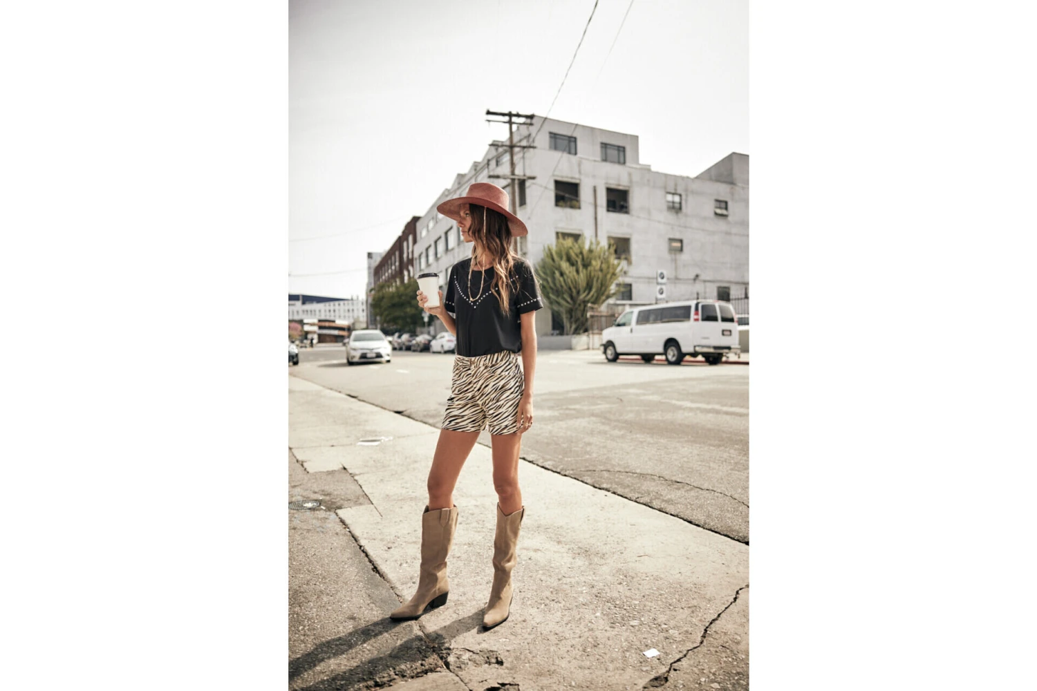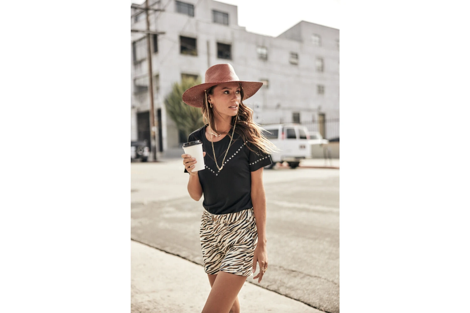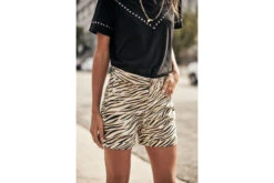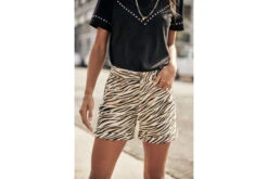 • Matière twill très légèrement stretch, imprimé zèbre khaki et blanc cassé
