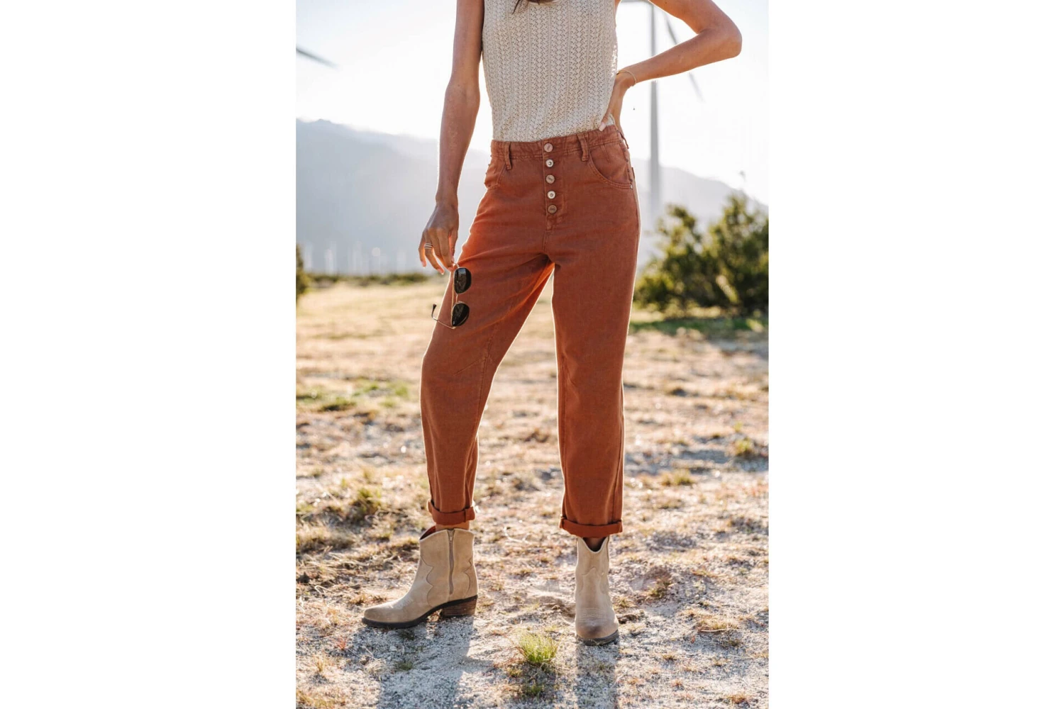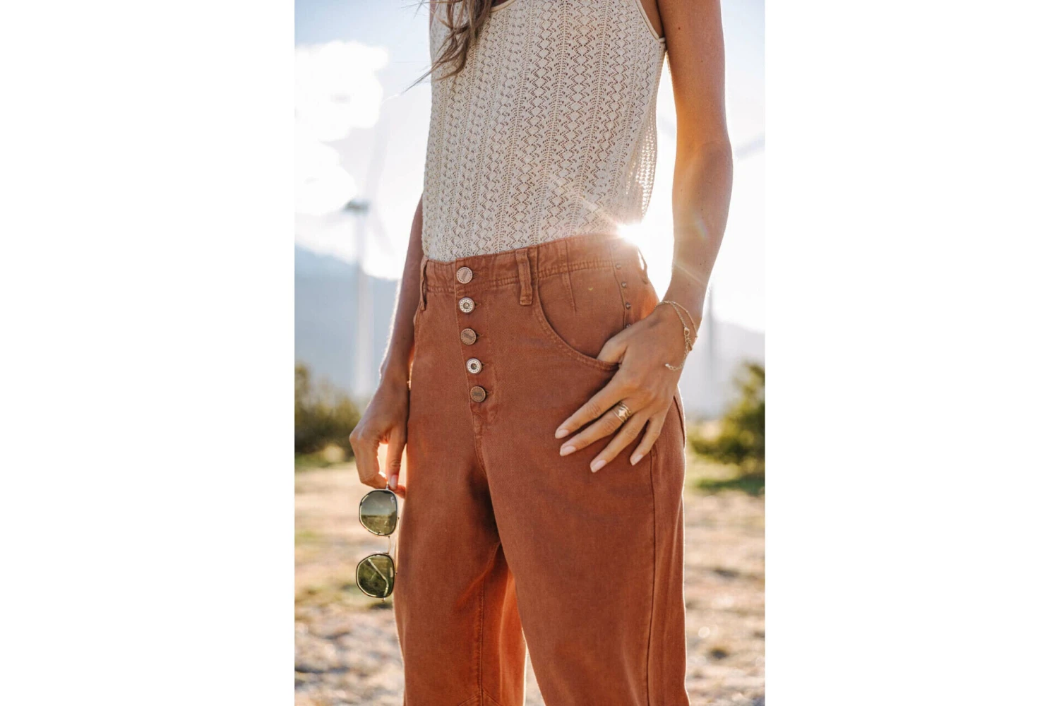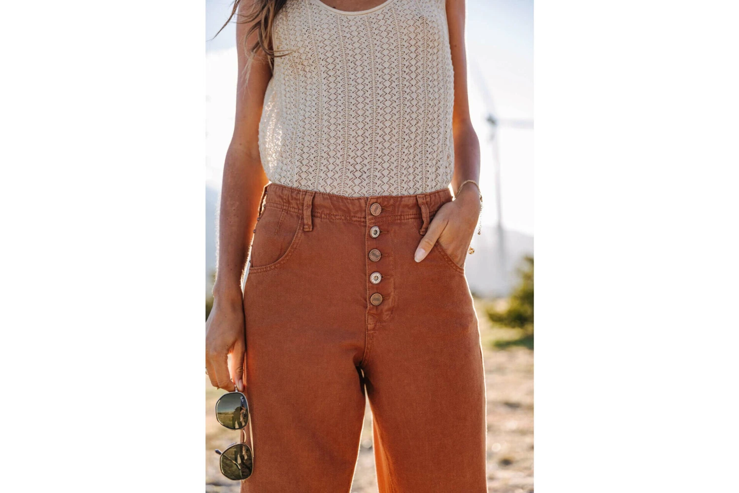 • Taille haute, ouverture avec 5 boutons fantaisies visibles