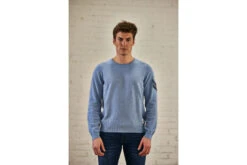 Logo chevron contrasté en intersia sur manche