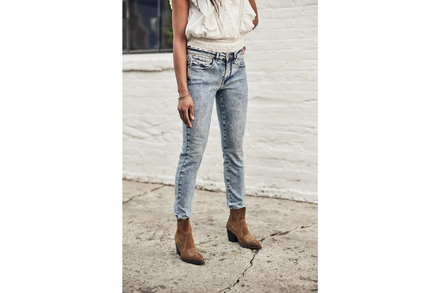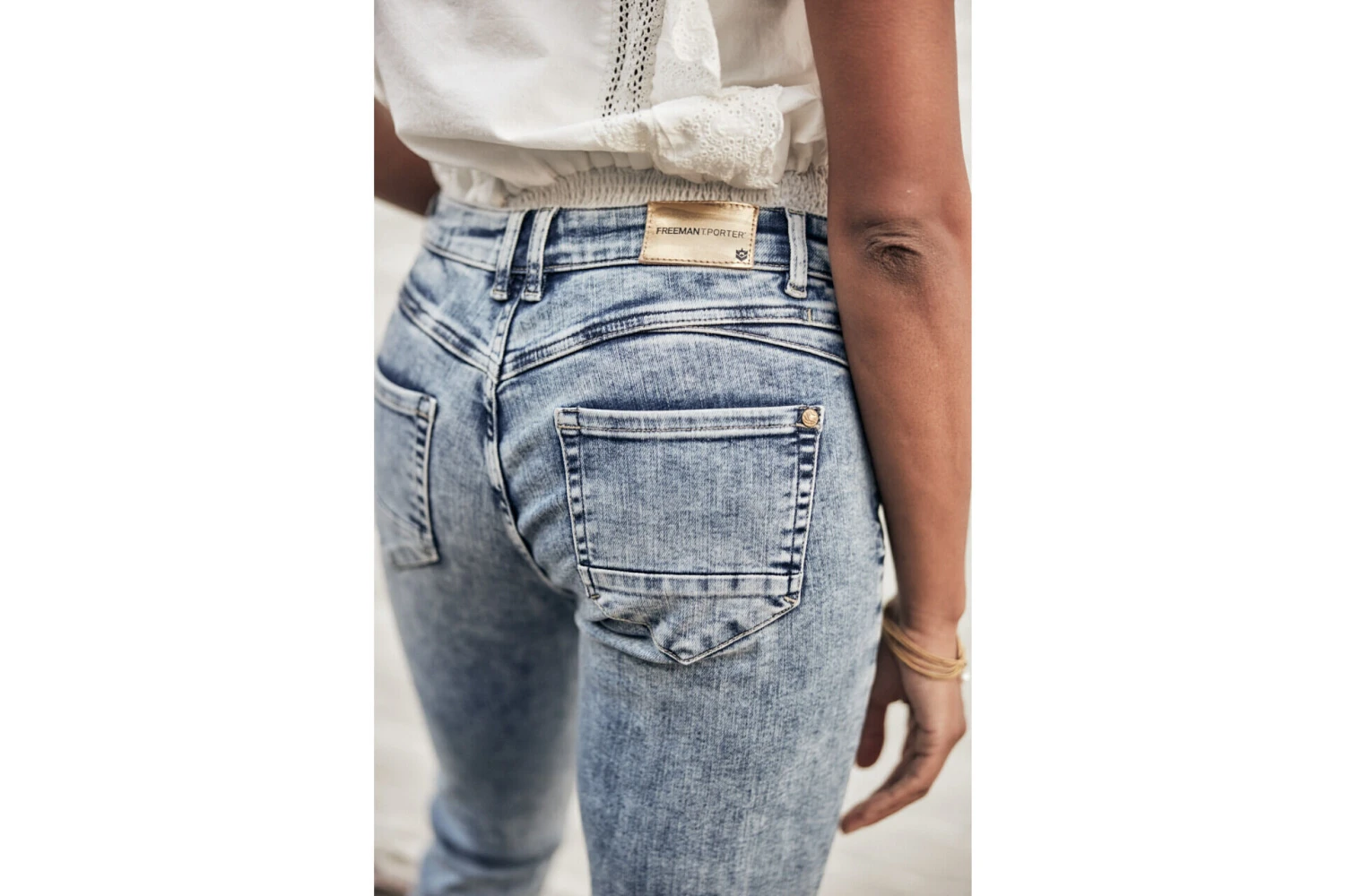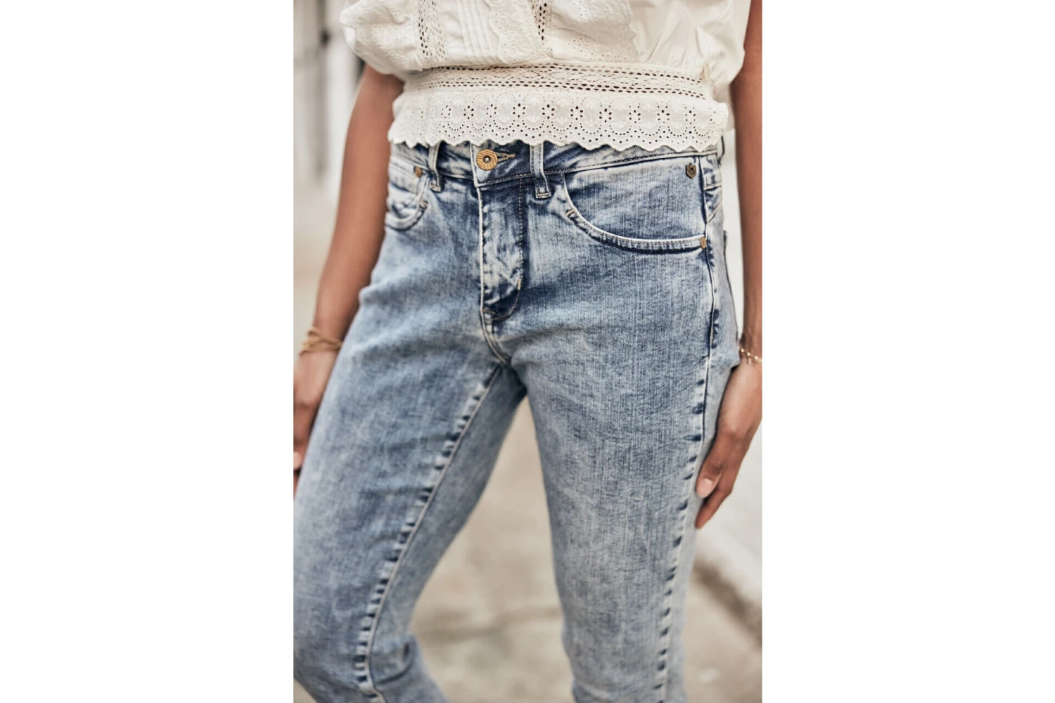 • Délavage bleu clair, bleached, esprit authentique