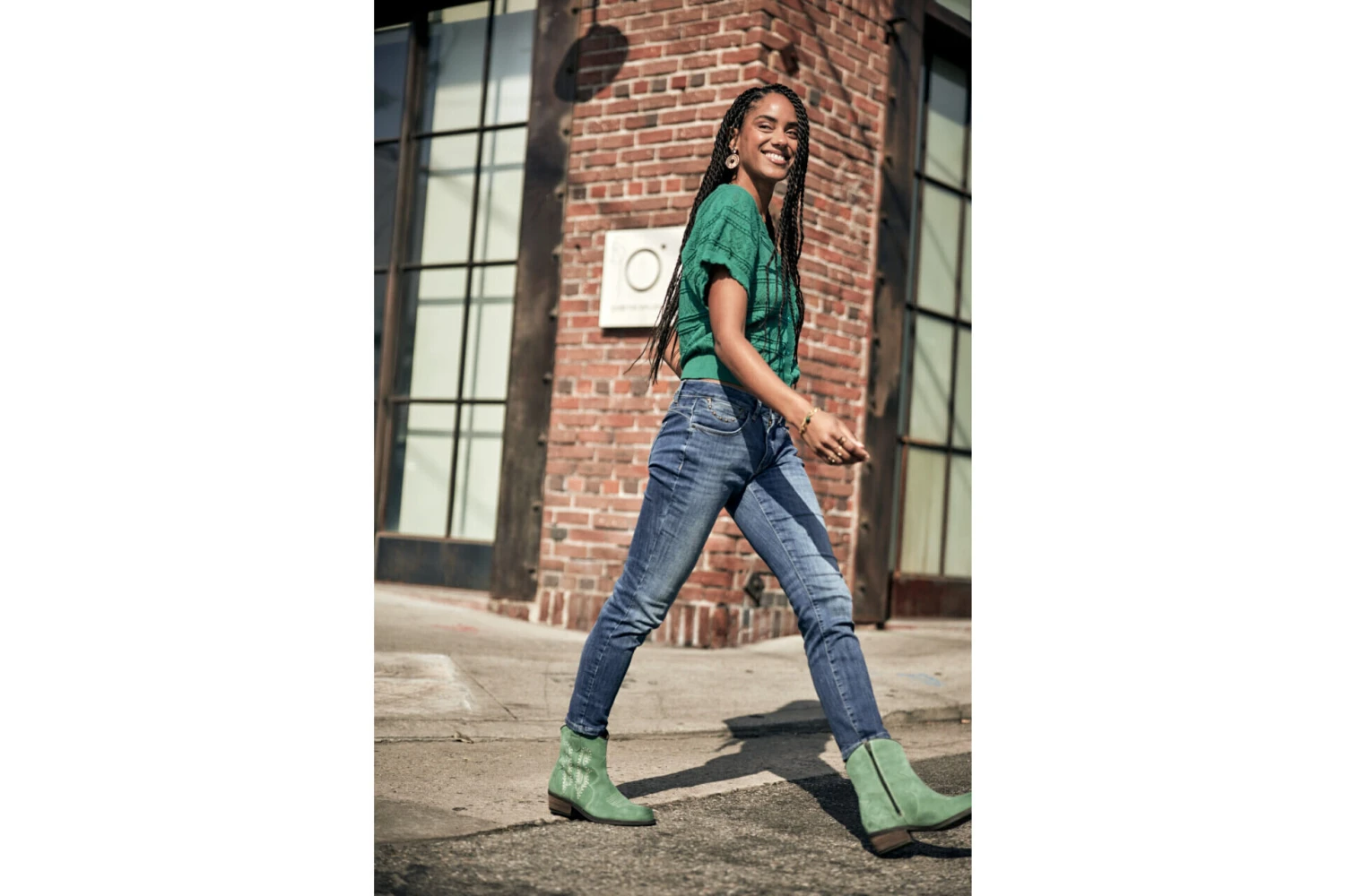 Anne-Sophie mesure 173 cm et porte une taille S.