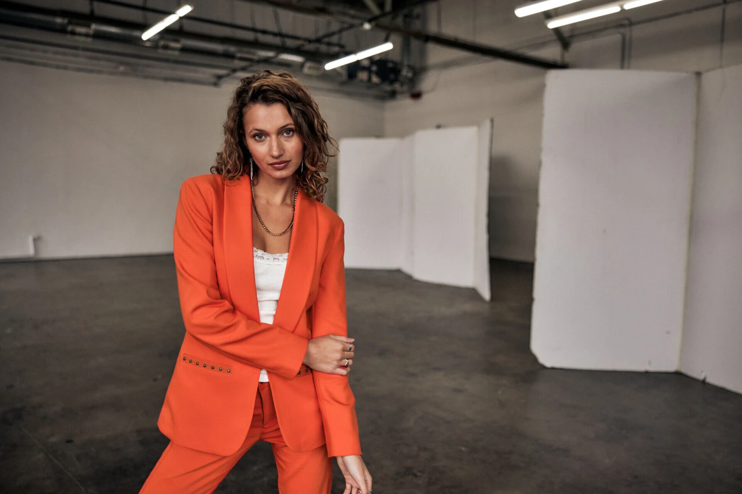 Freeman T. Porter Stessy Polyneo Blazer Cintré Col Smoking Femme, Tangerine Tango