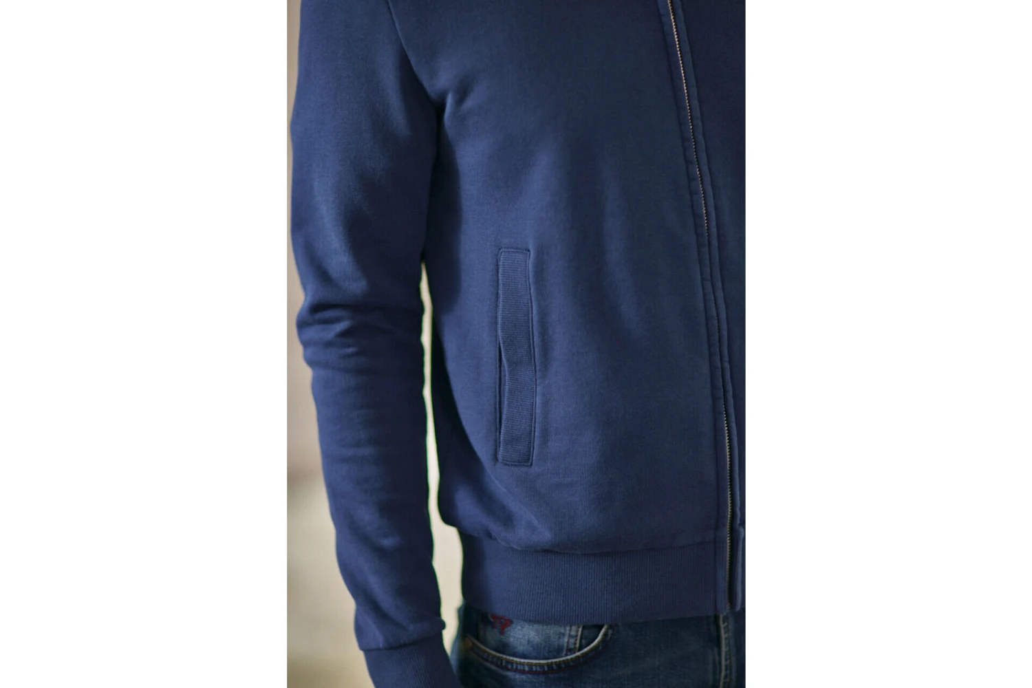Bord côte aux poignets, bas de vêtement et poches côtés