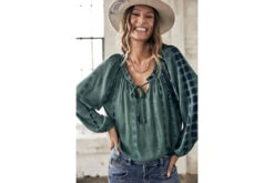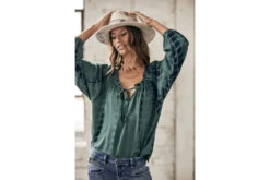 • Large encolure ronde qui finit en petit V avec liens à nouer