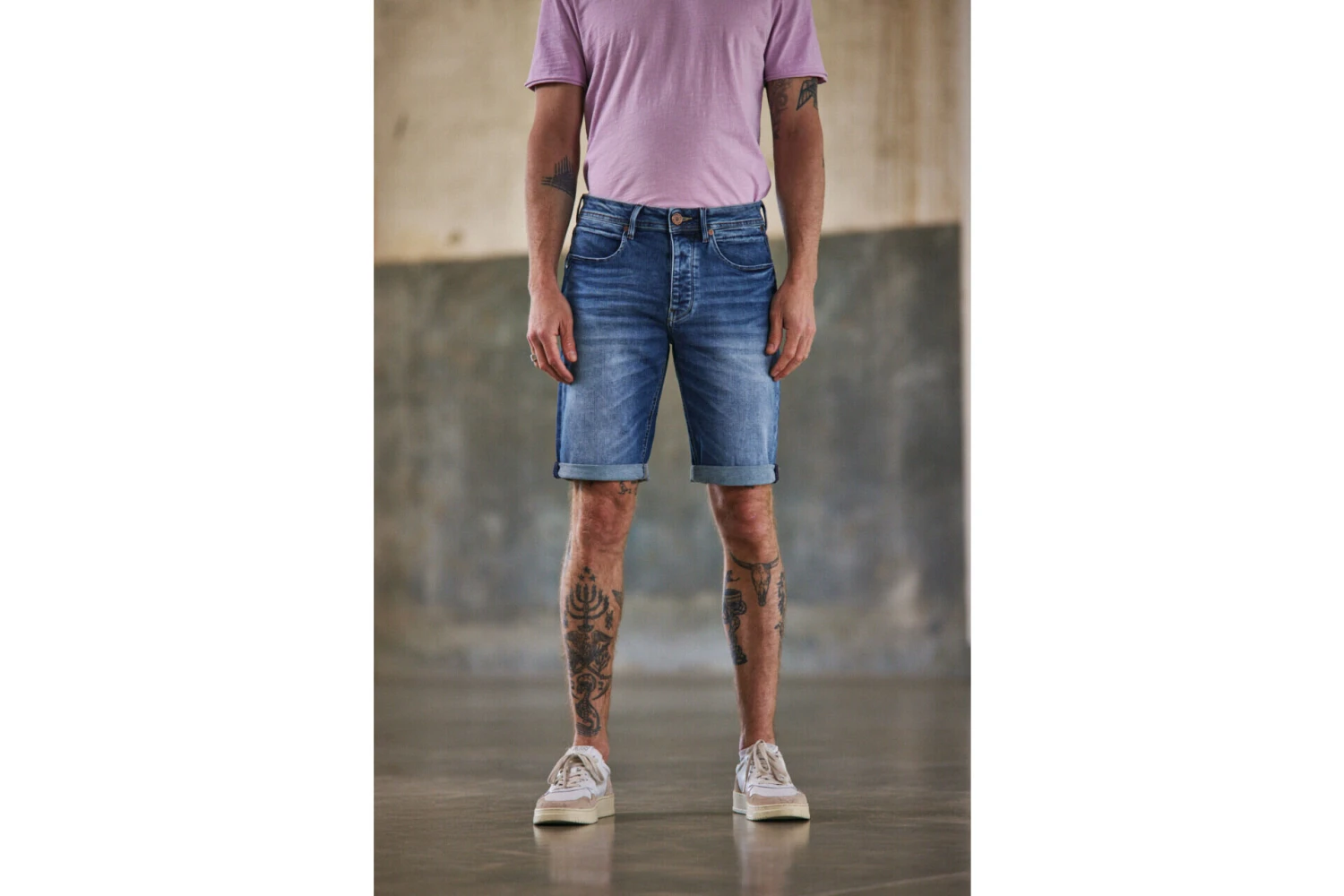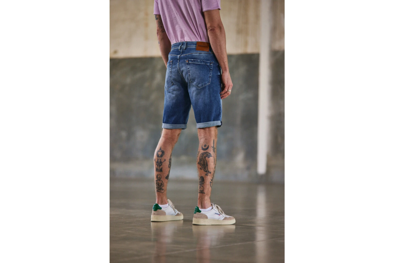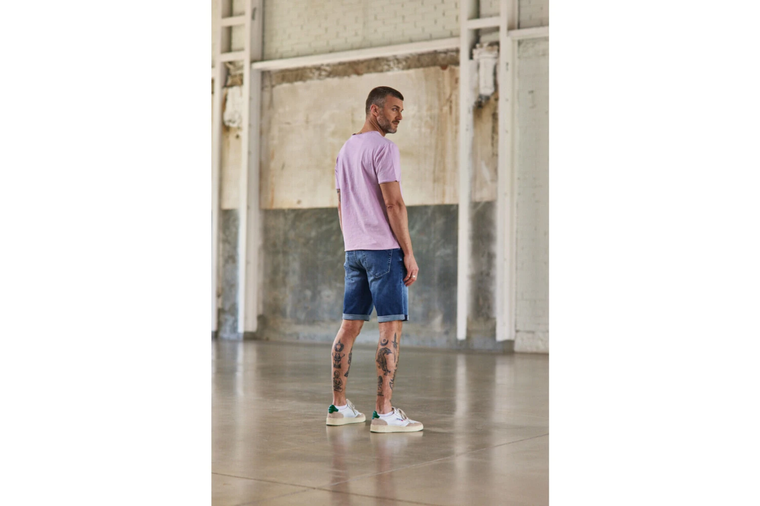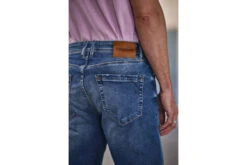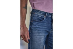 Détail fantaisie de surpiqûres rouges sur poche ticket et poches