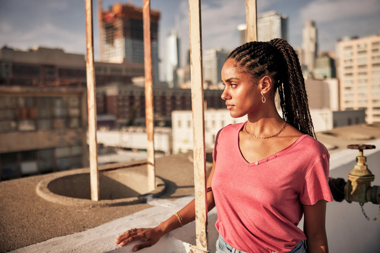 Anne-Sophie mesure 173 cm et porte une taille S.