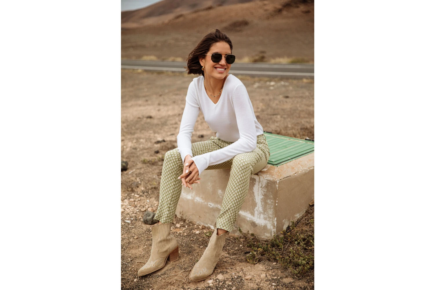 âą MatiĂšre jaquard stretch, motifs dans les tons kaki, toucher trĂšs doux