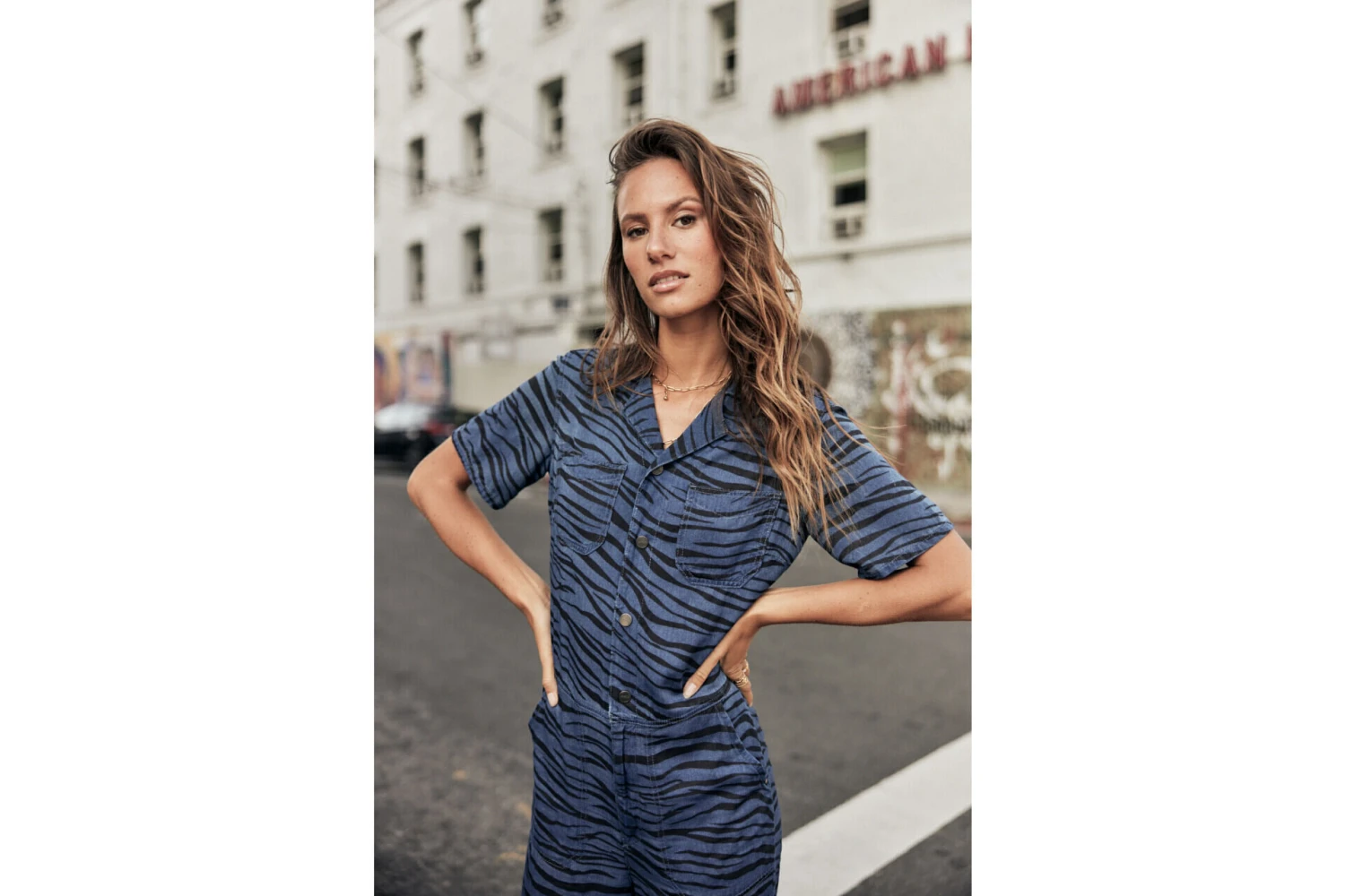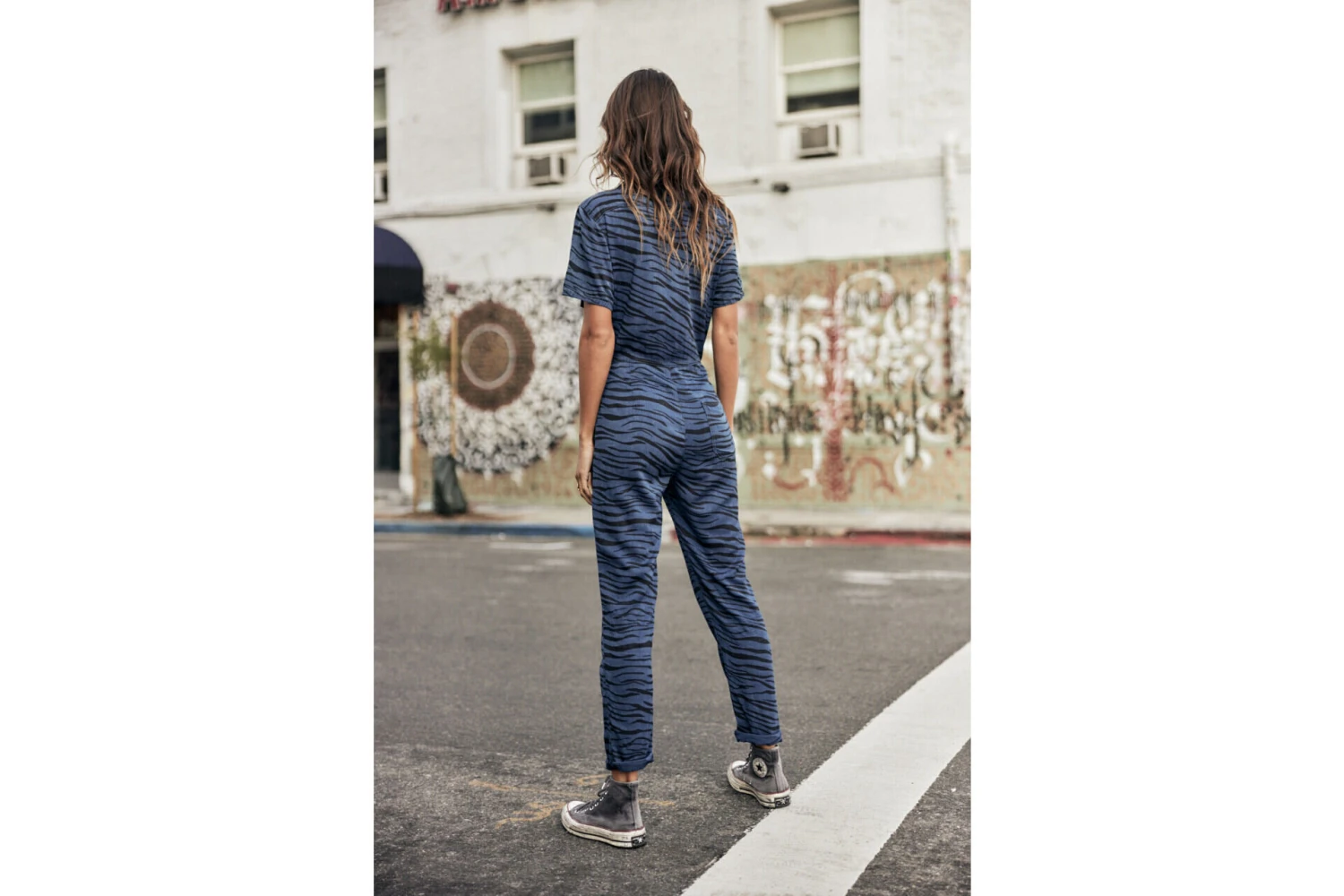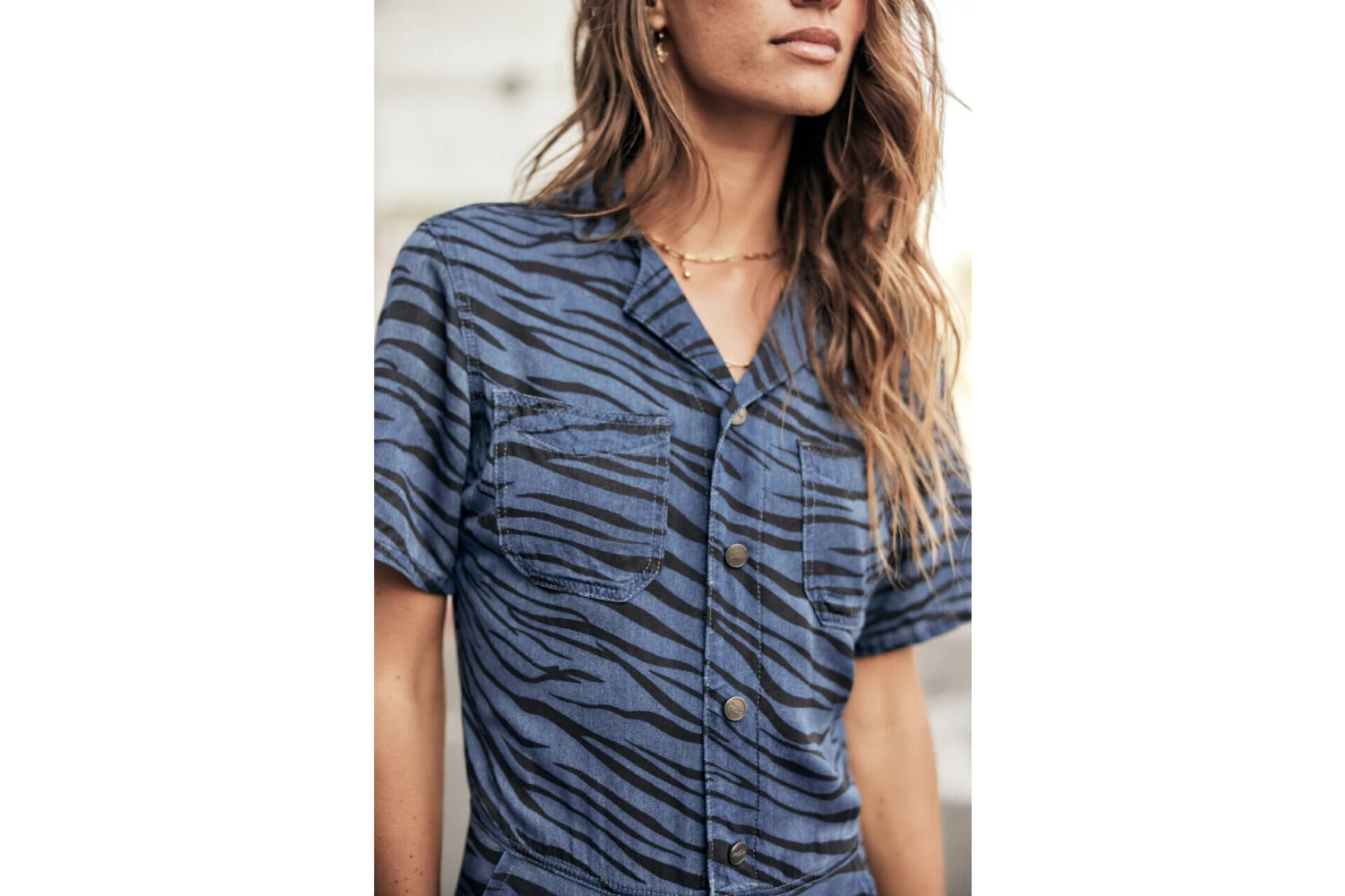 • Matière non stretch, imprimé zèbre dans les tons bleus