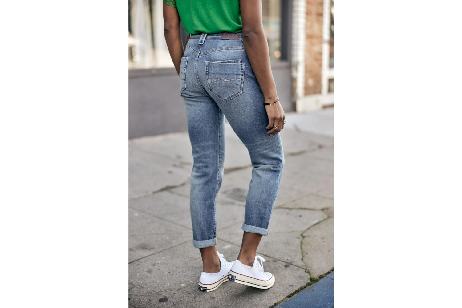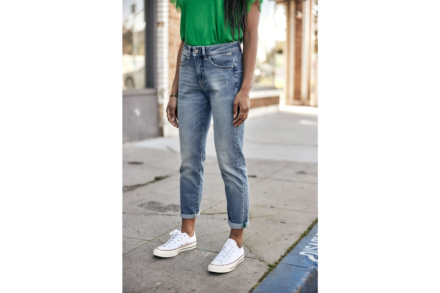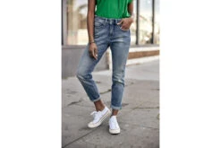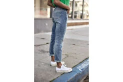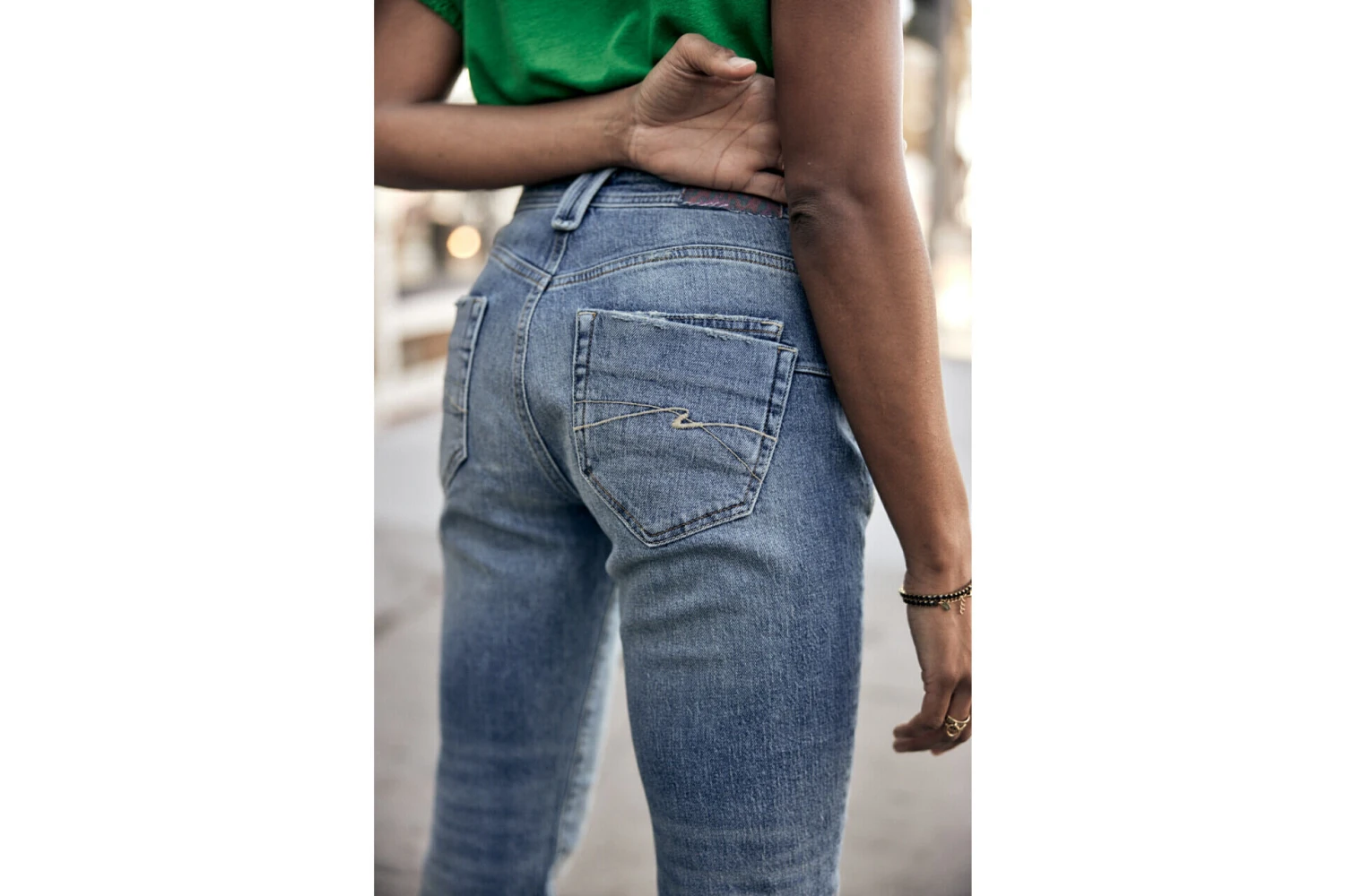 Anne-Sophie mesure 173 cm et porte une taille 27.