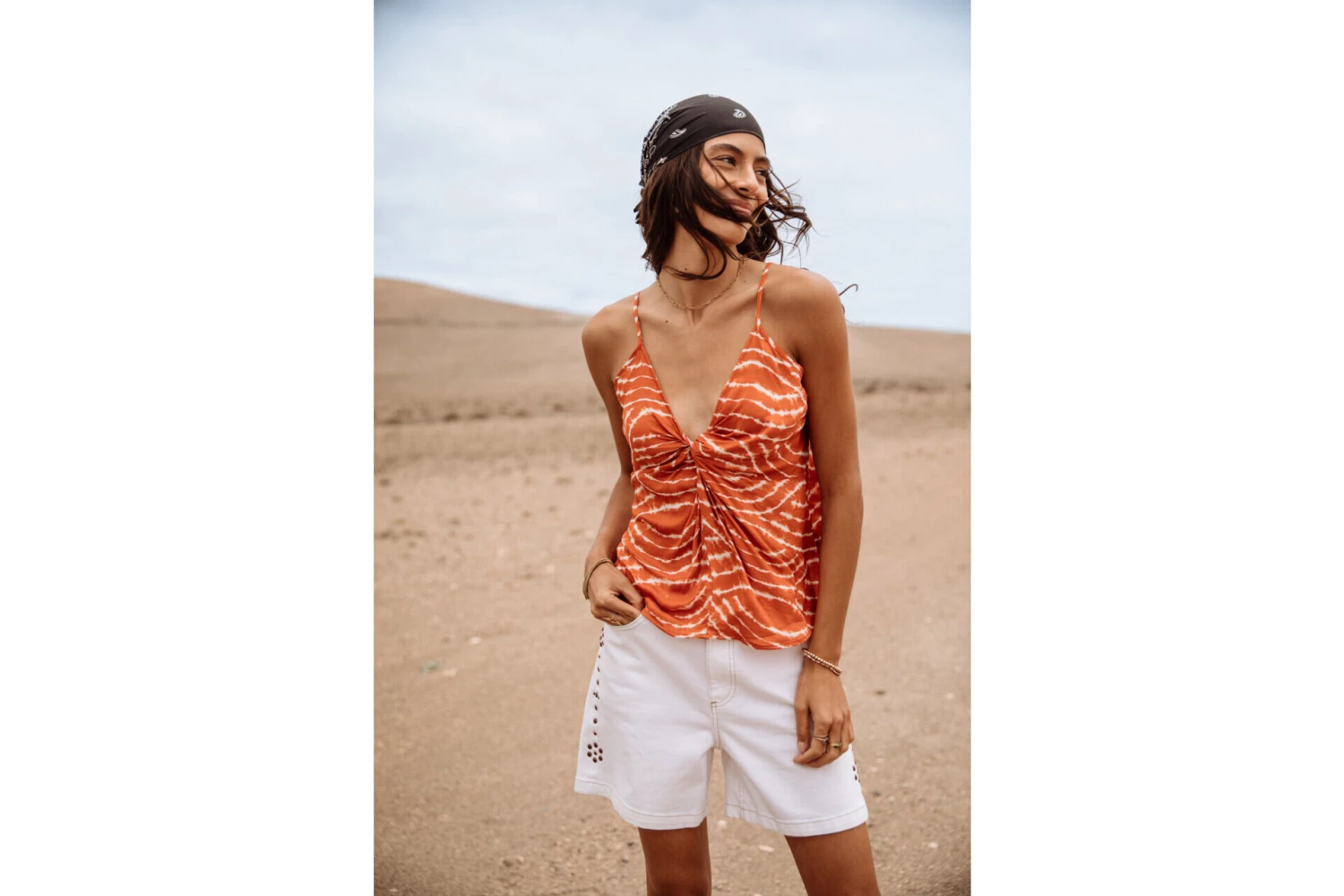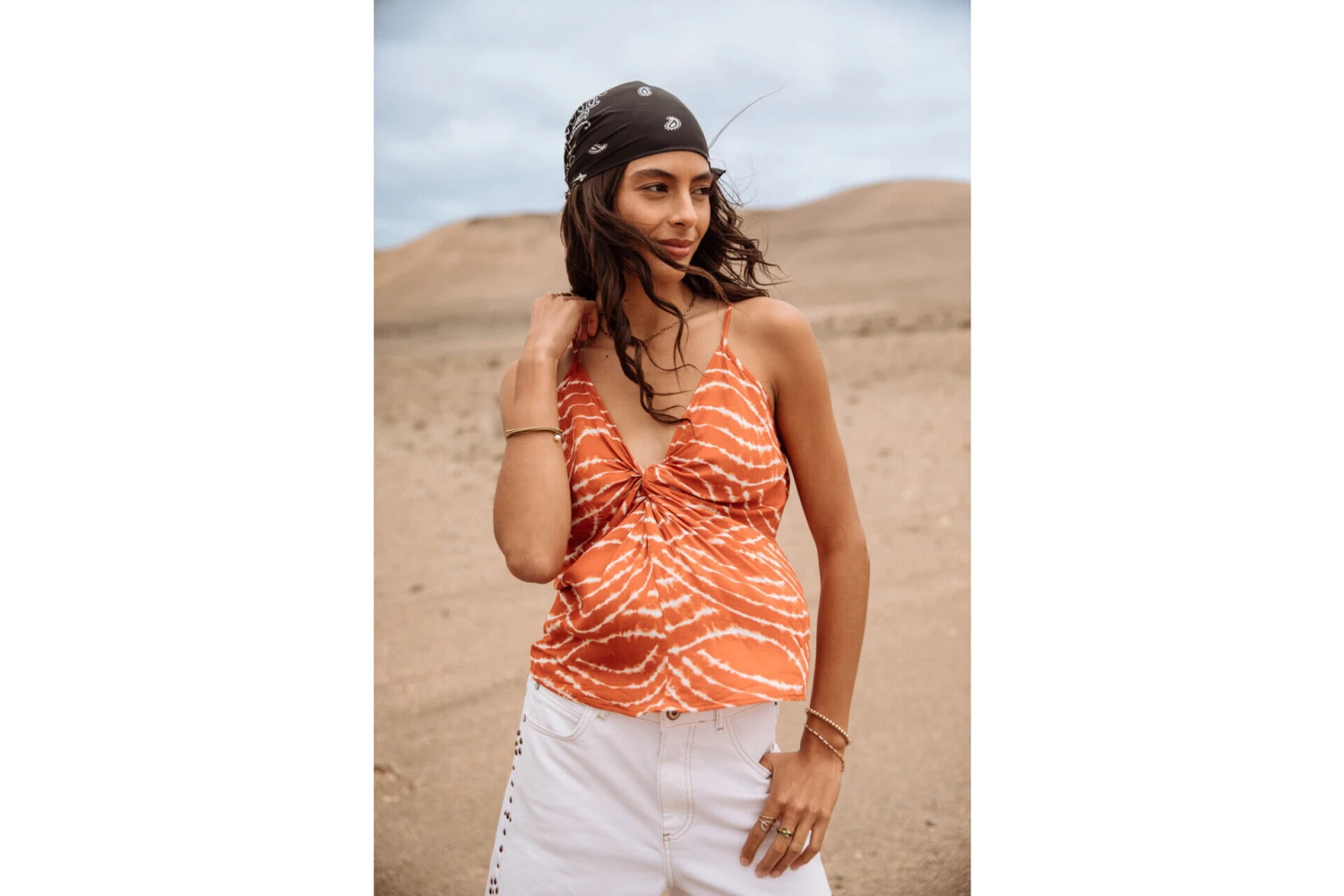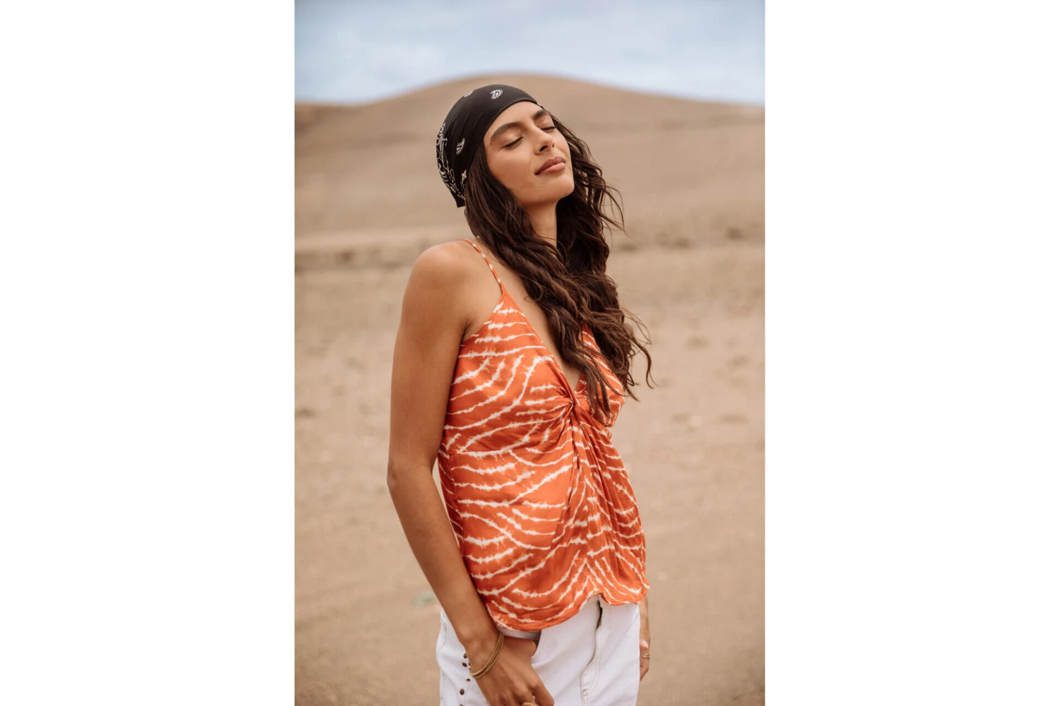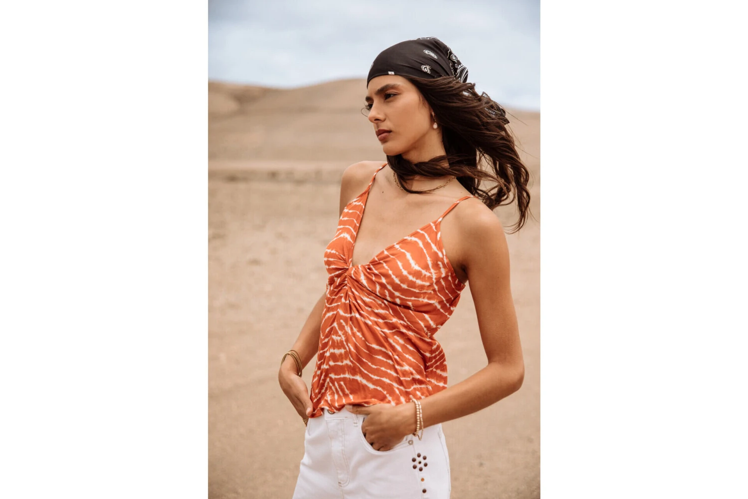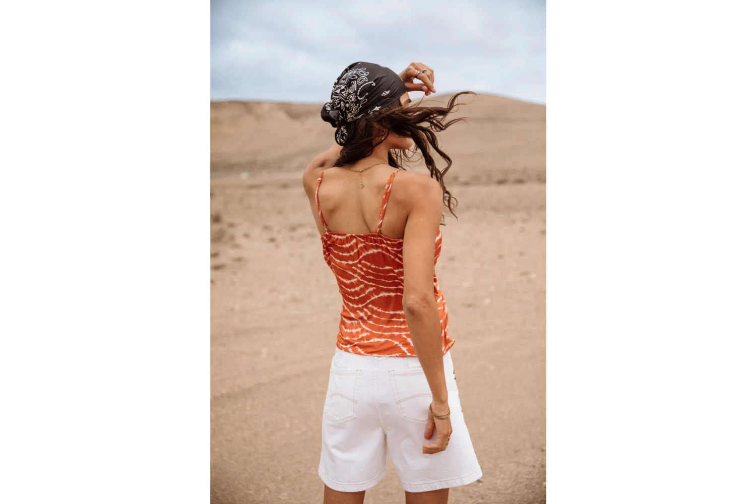 • Top à bretelles dans une matière satinée et fluide imprimée dans un motif bicolore tie & dye
