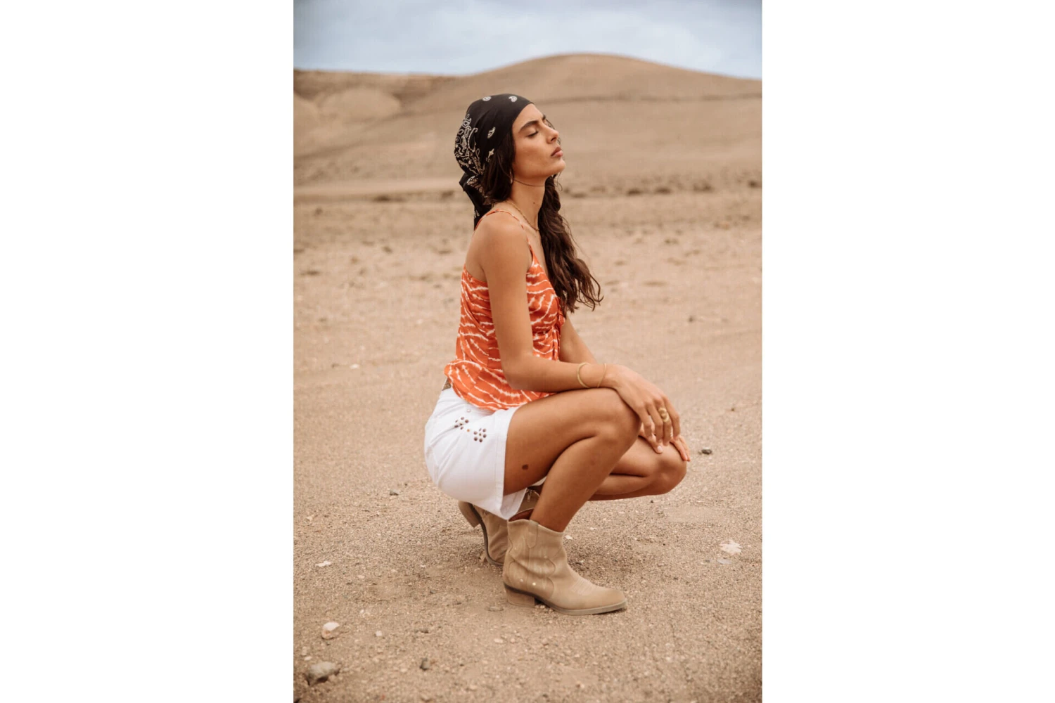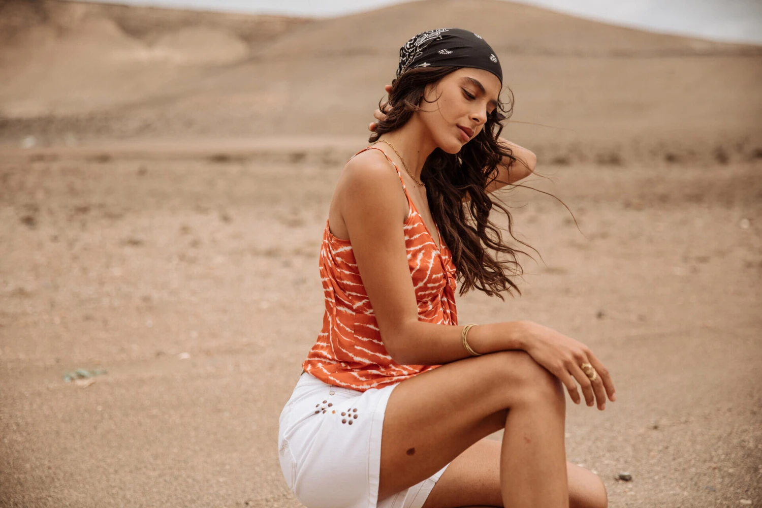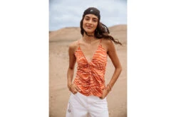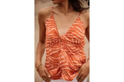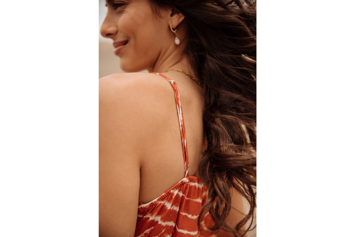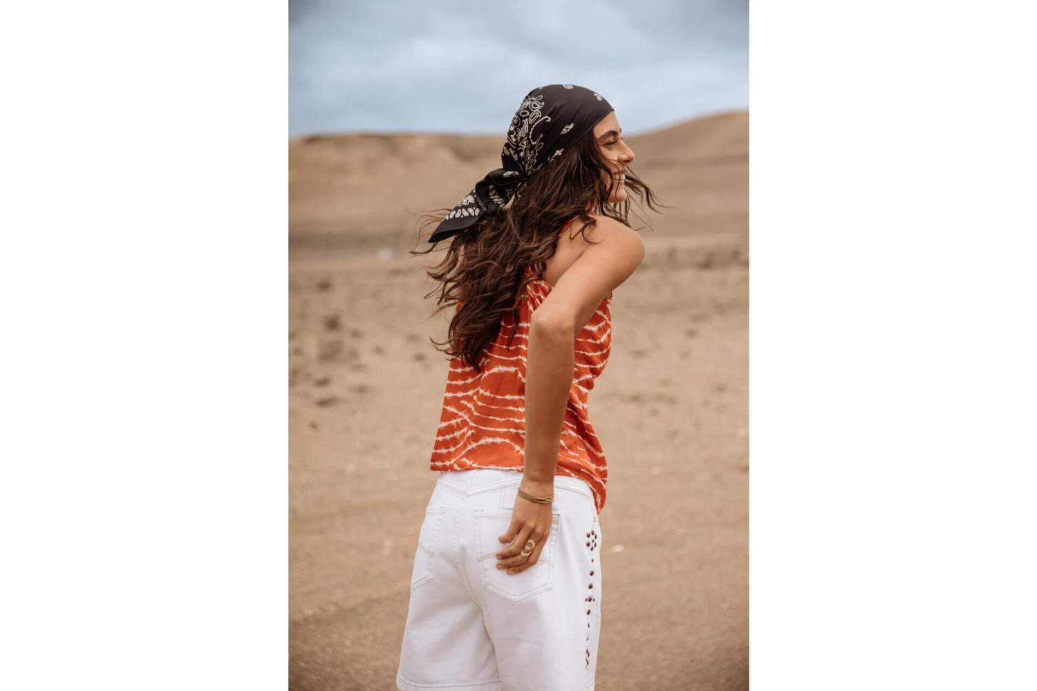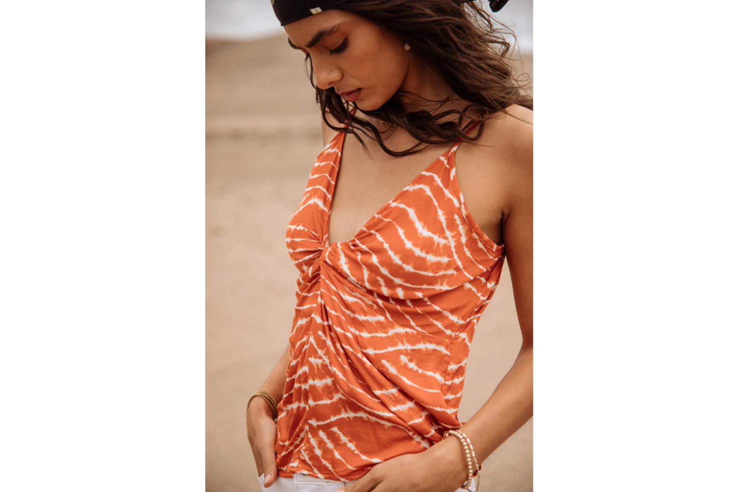 • Top à bretelles dans une matière satinée et fluide imprimée dans un motif bicolore tie & dye