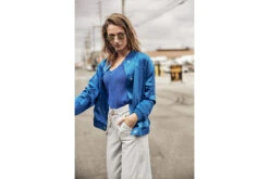 • Bomber léger entièrement boutonné sur le devant par des pressions métalliques couleur argent