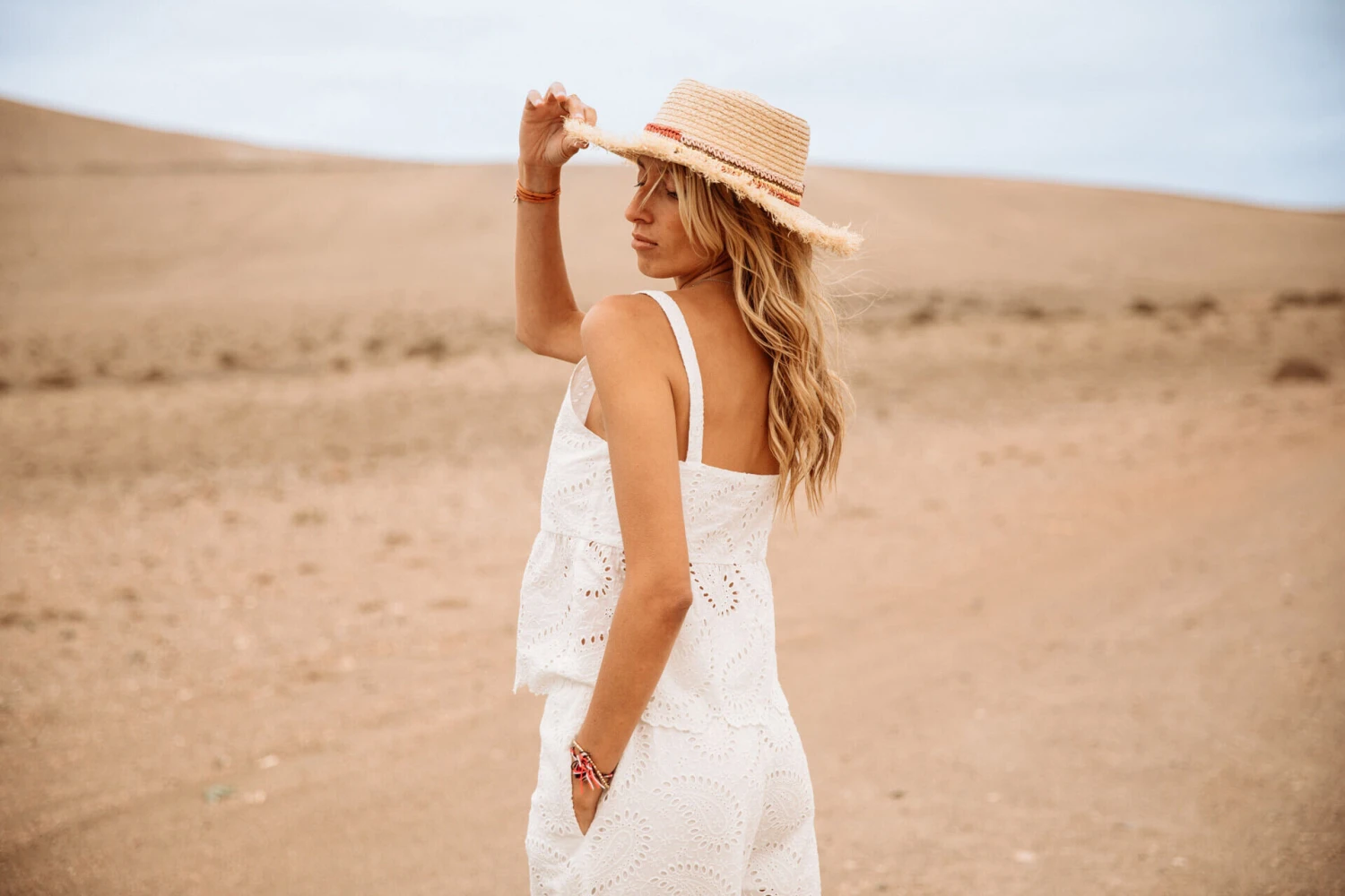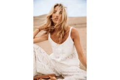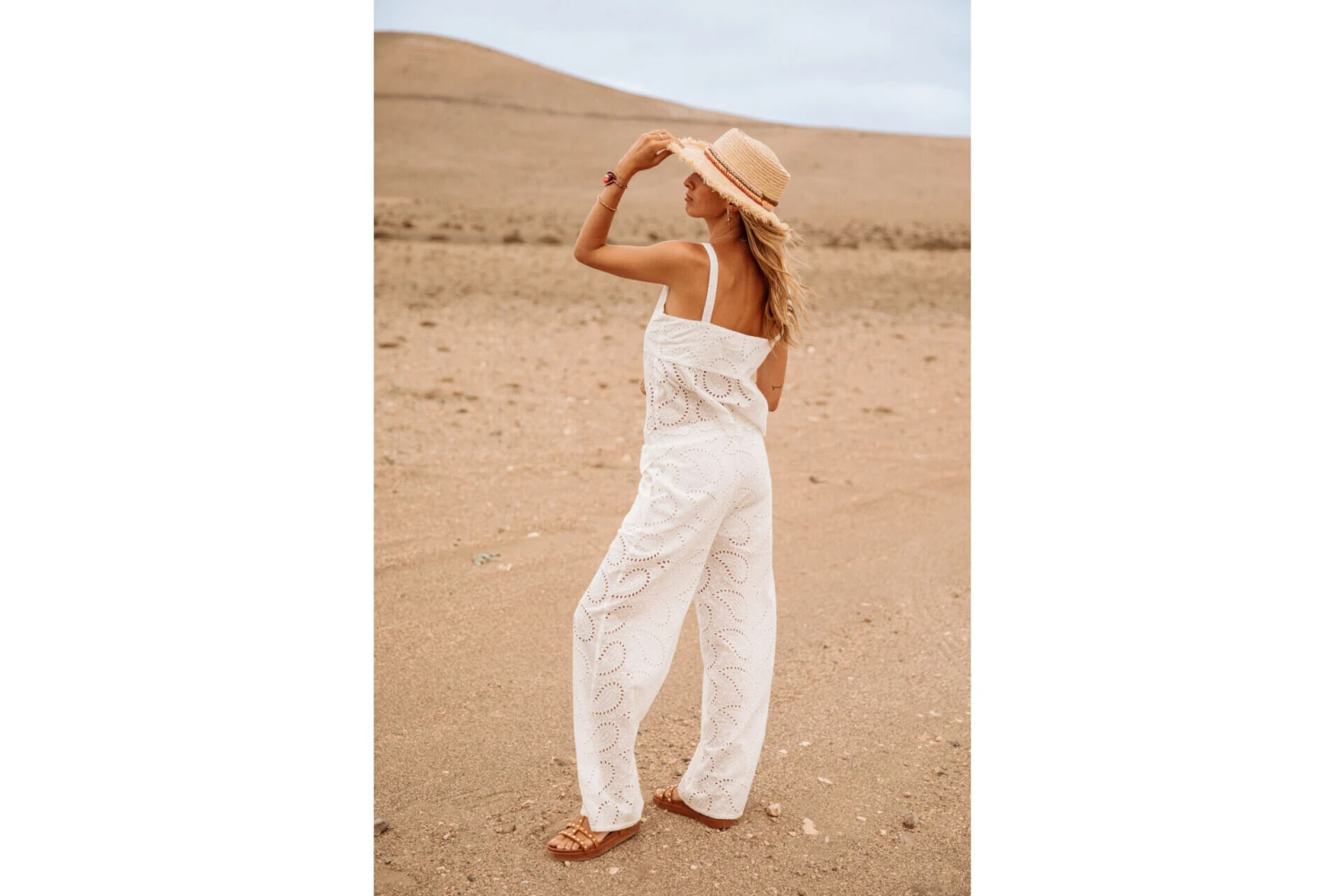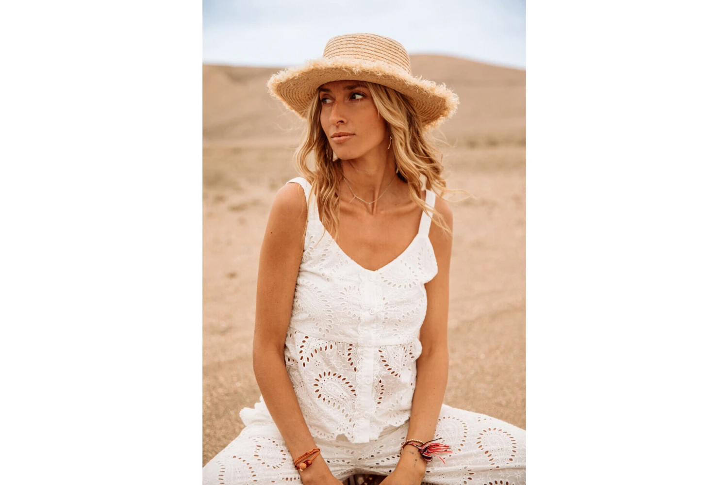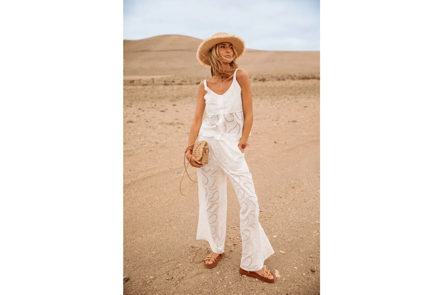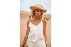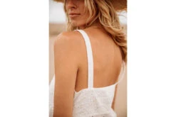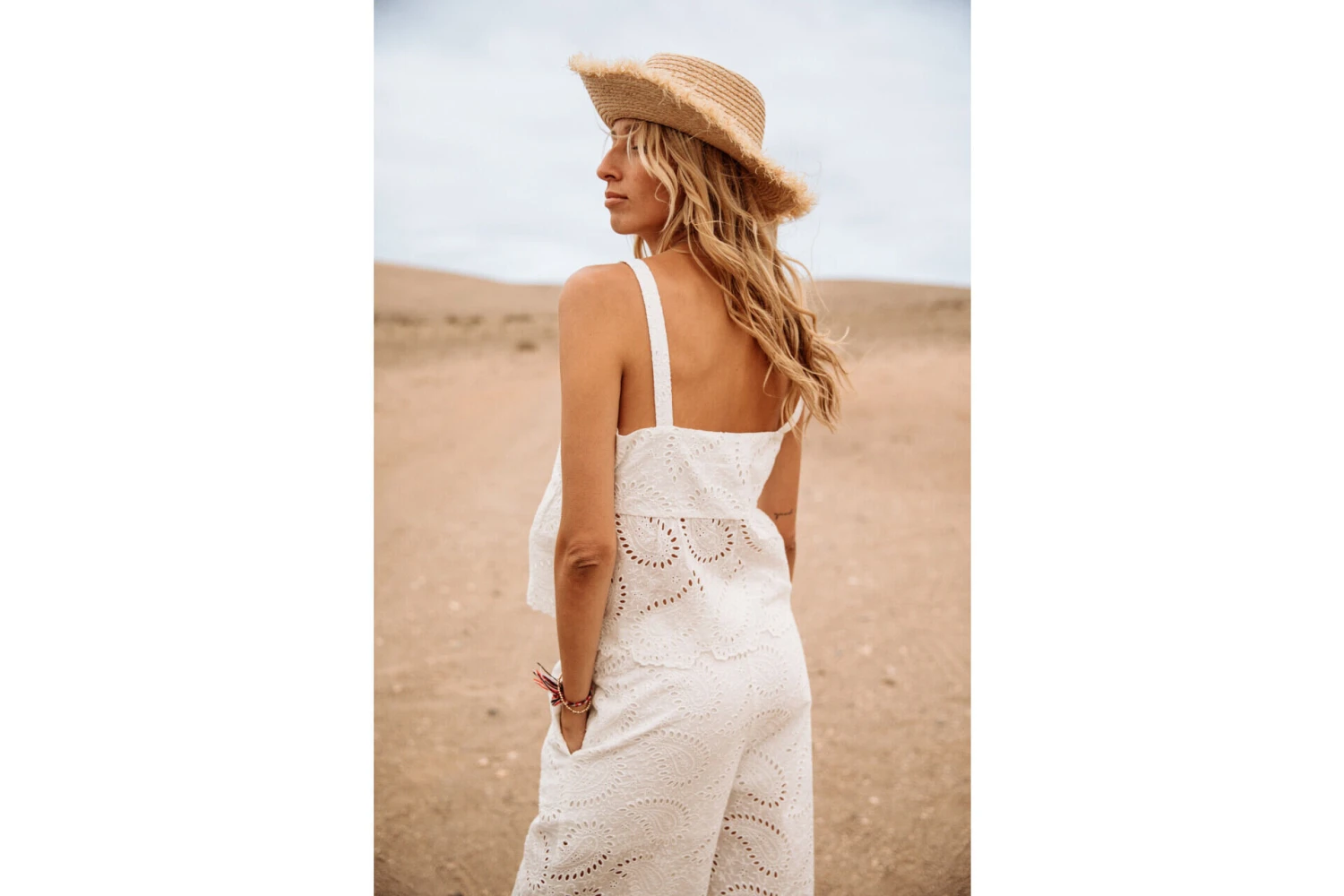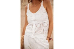• Top à bretelles larges dans une matière en broderie anglaise fantaisie, unie