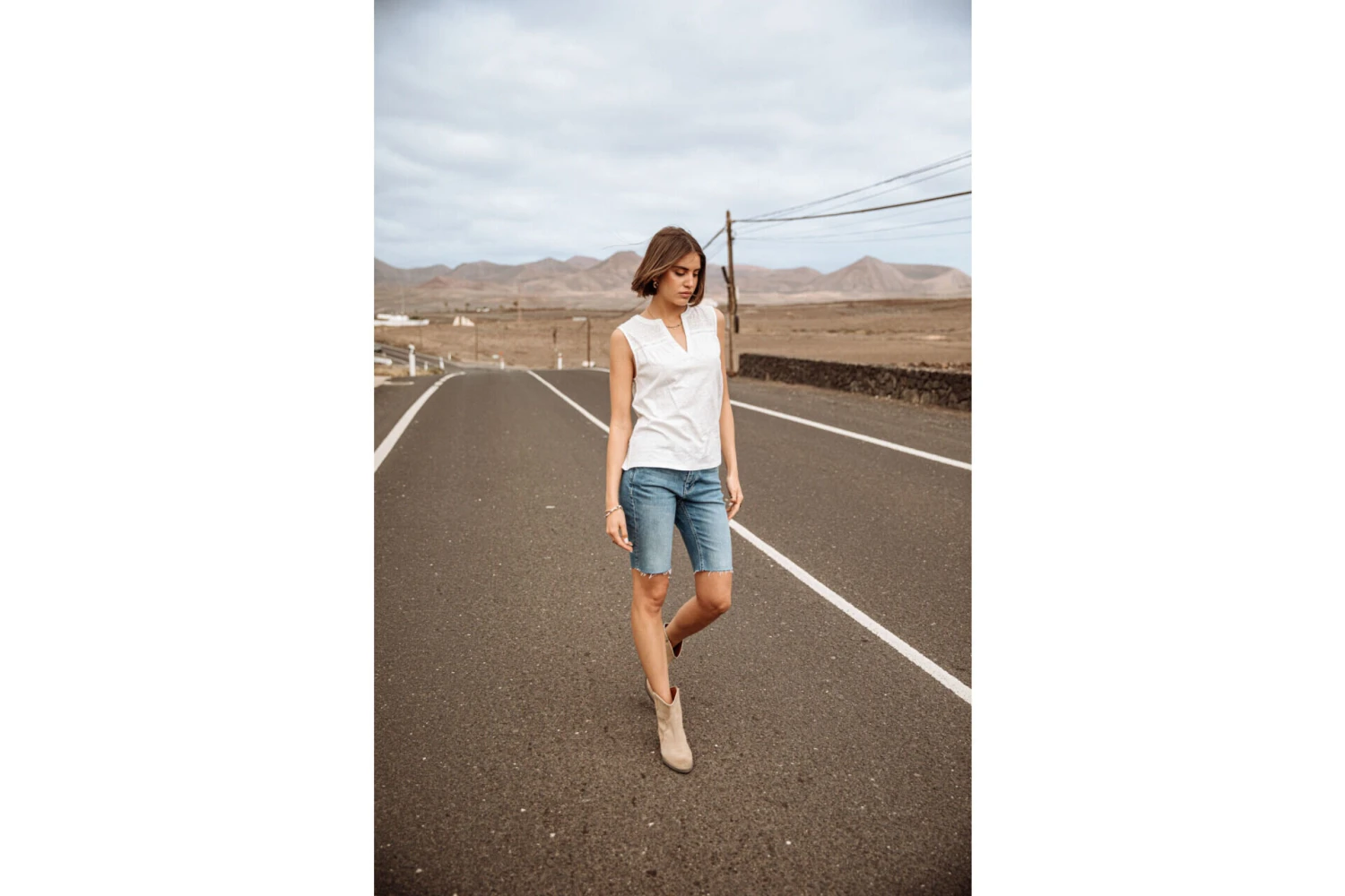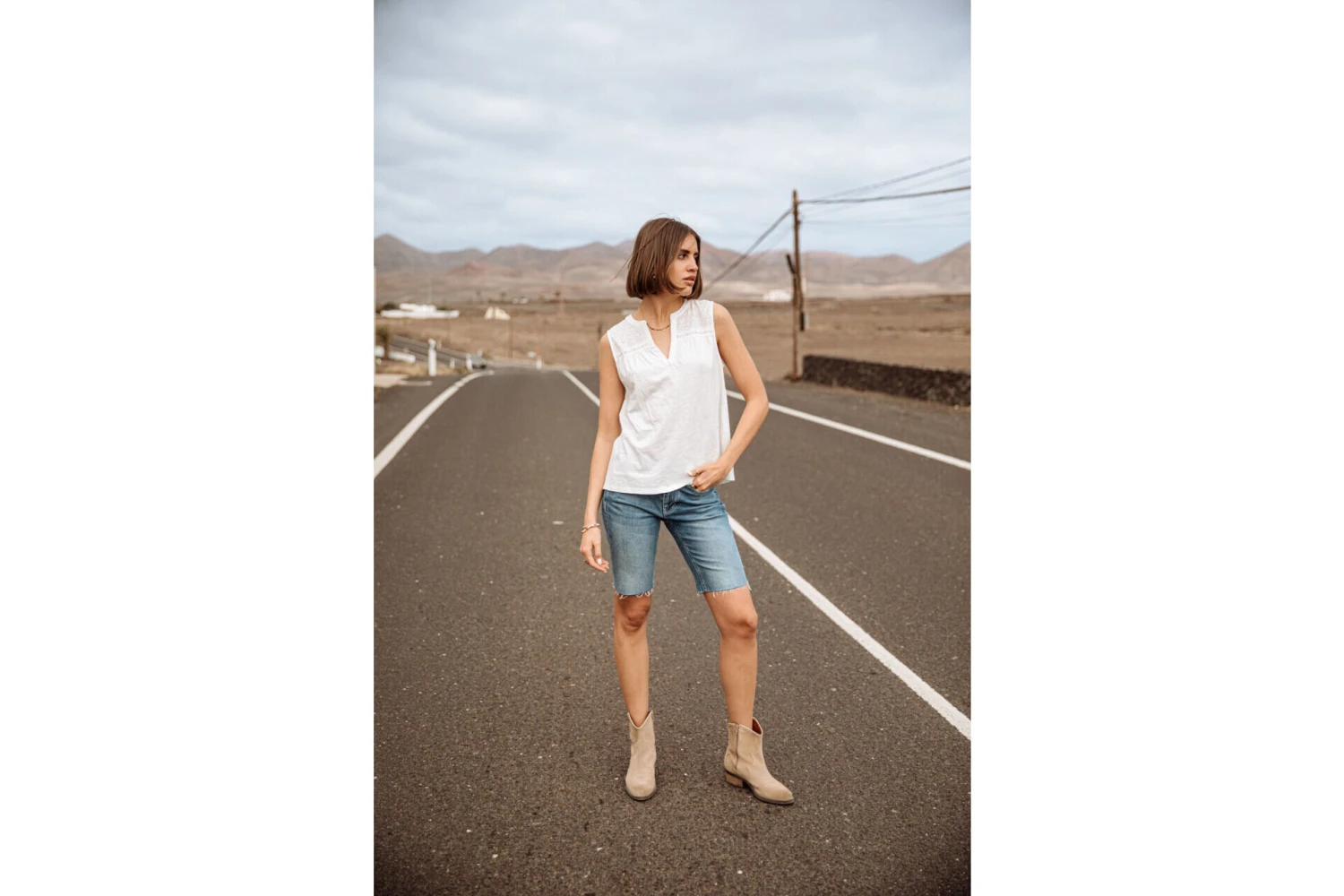 Anne-Sophie mesure 173 cm et porte une taille S.