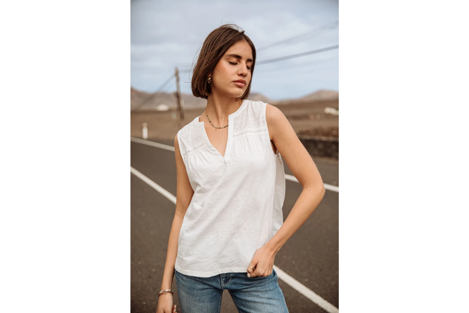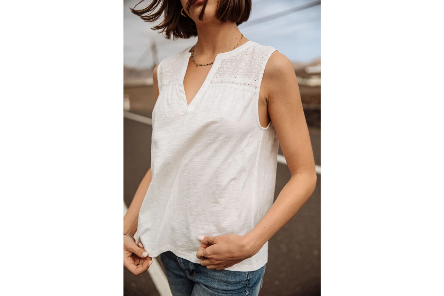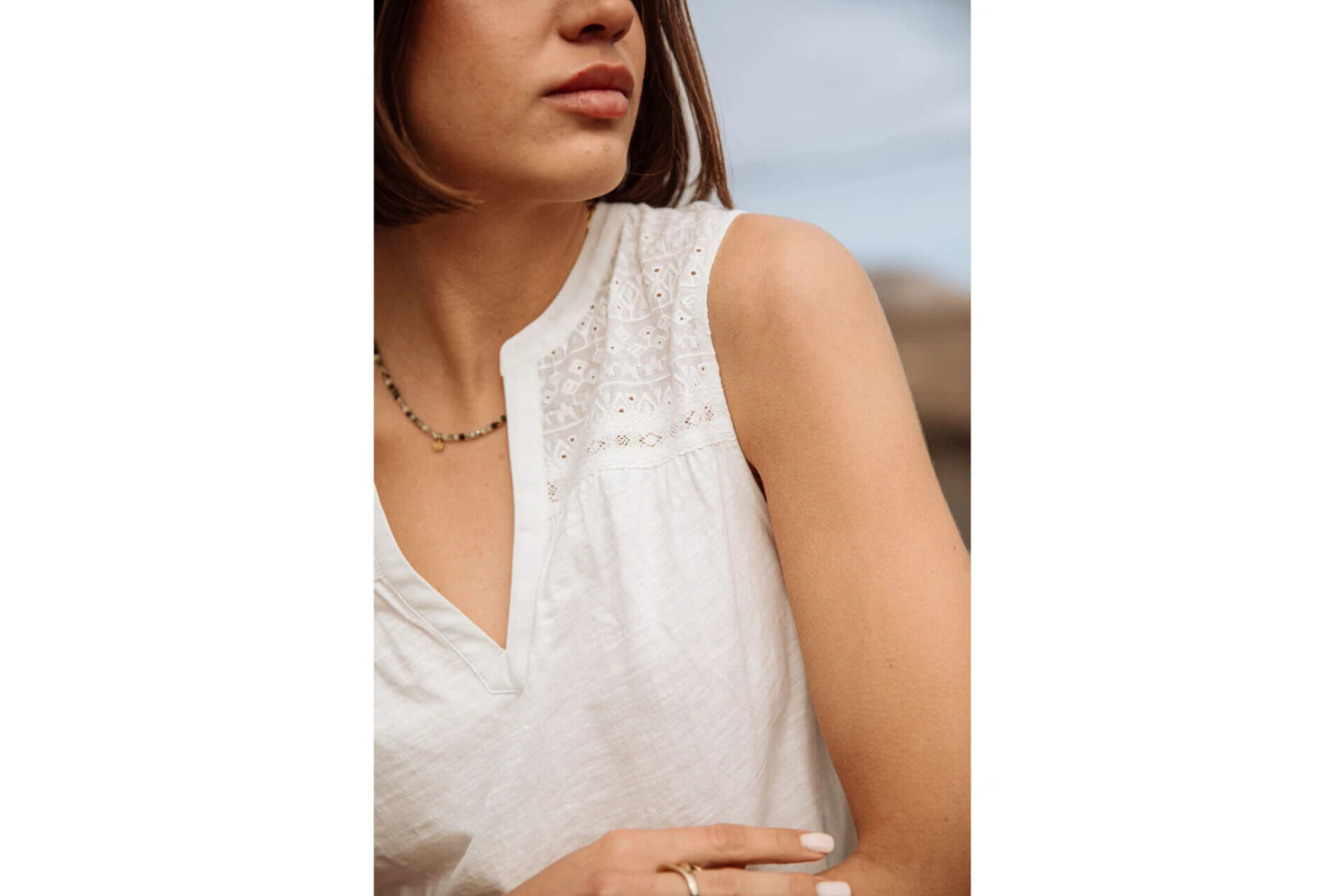 • Haut du corps en tissu coton brodé
