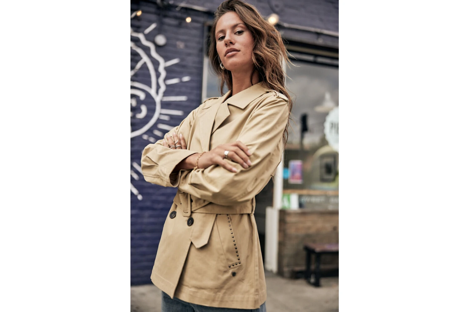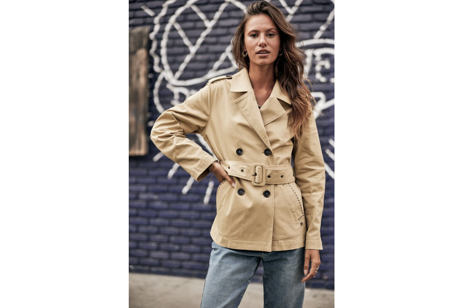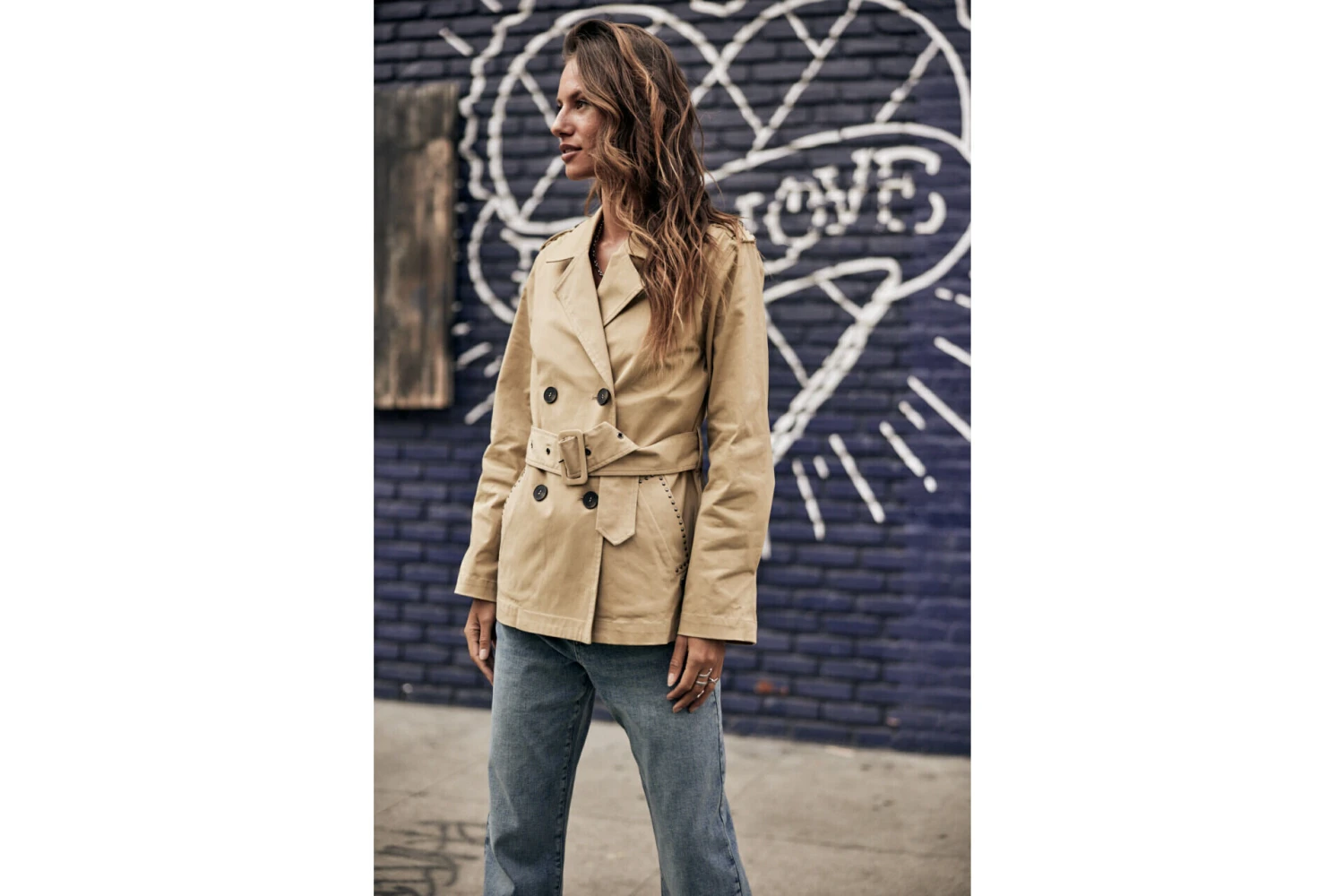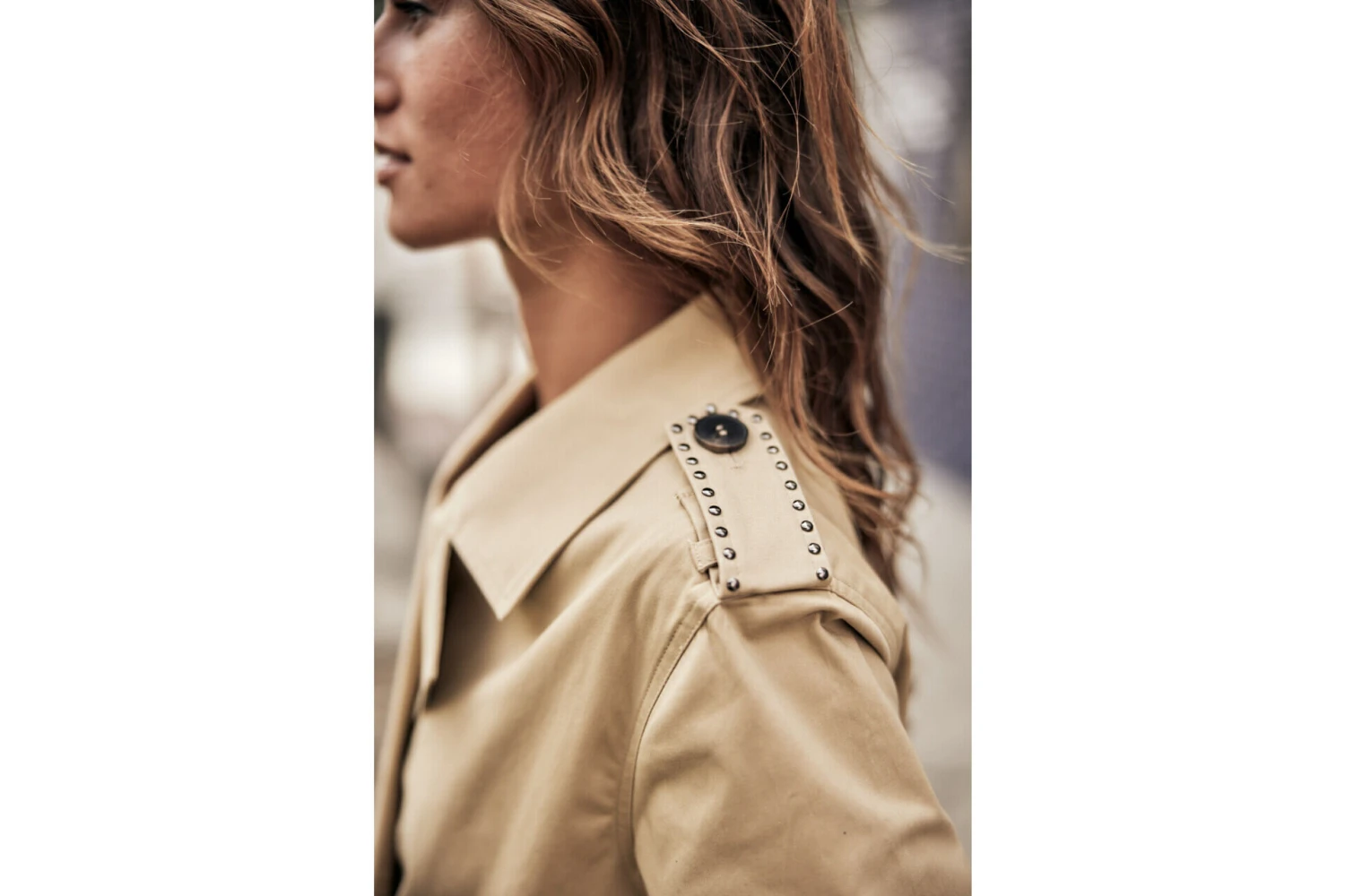 • Détail de petits clous sur les pattes épaules, les poches avant et le passant arrière