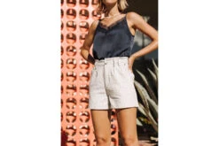 • Tissu rayé non extensible, tons blanc cassé et bleu