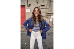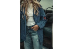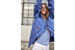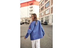 • La veste est ornée de patchs brodés