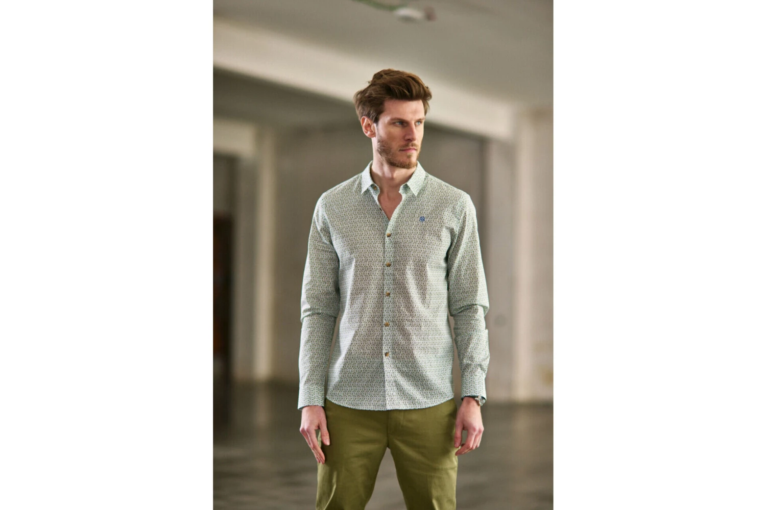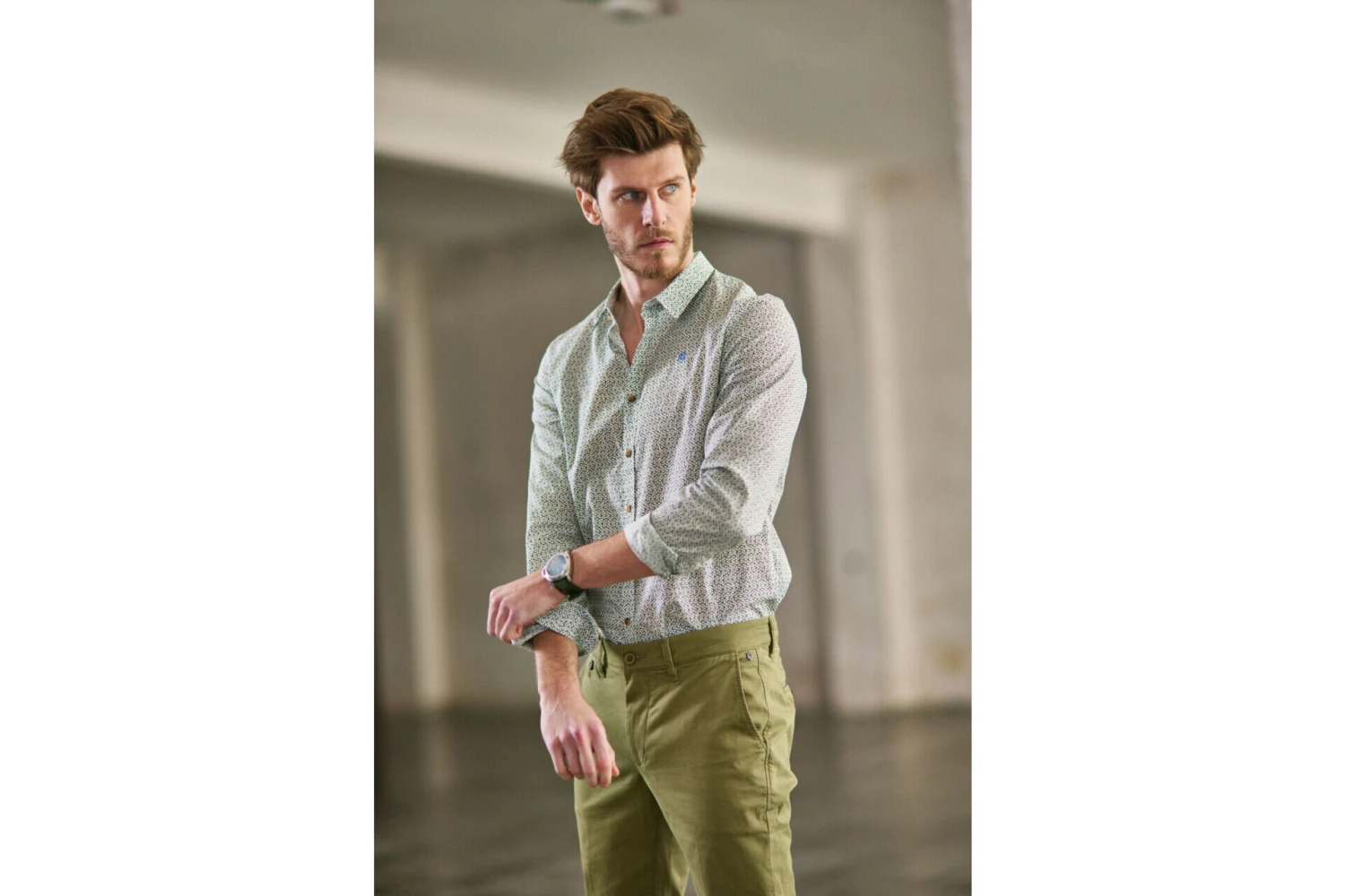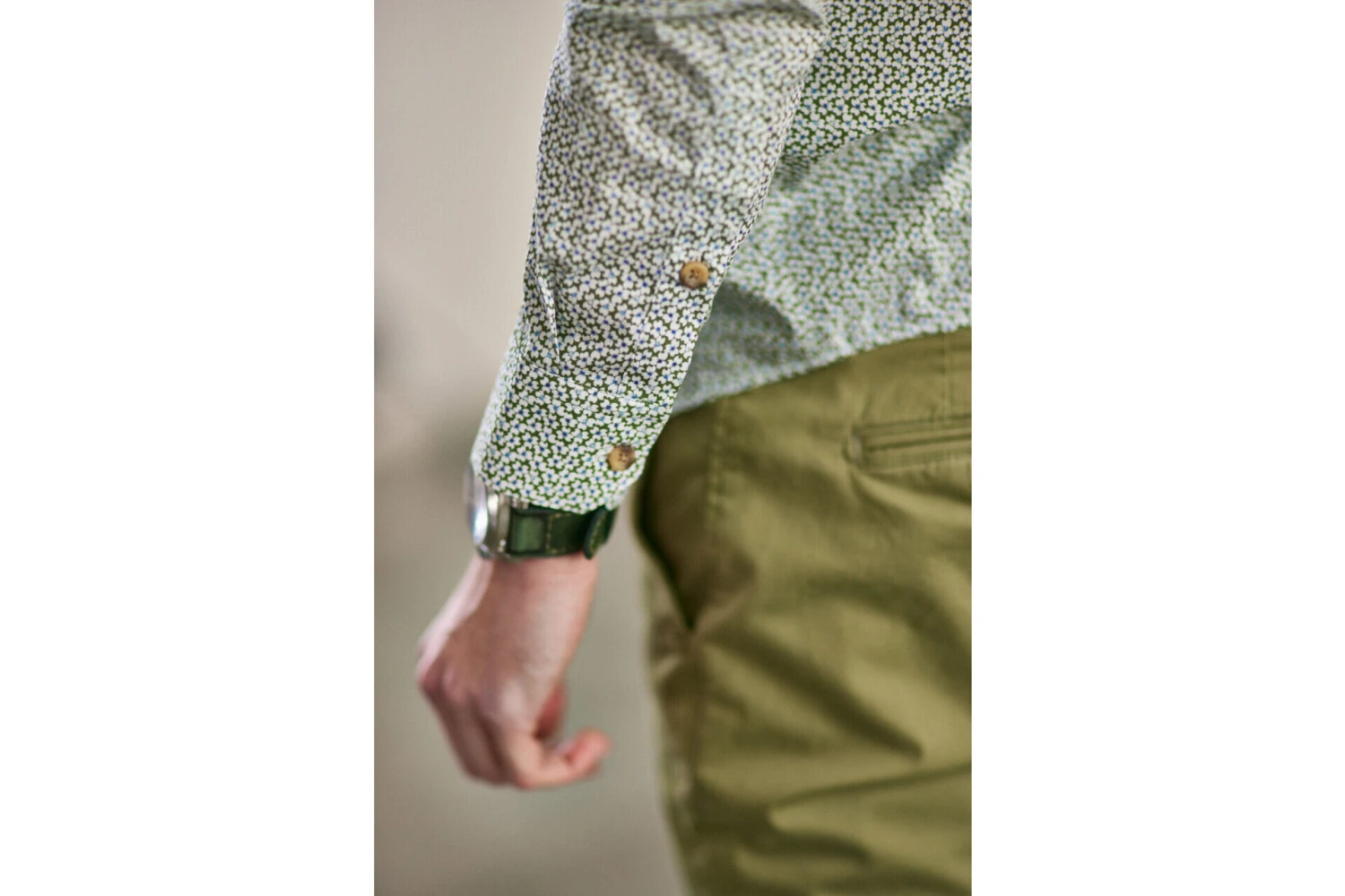 Matière non stretch,à motif fleuris dans les tons kaki et bleu